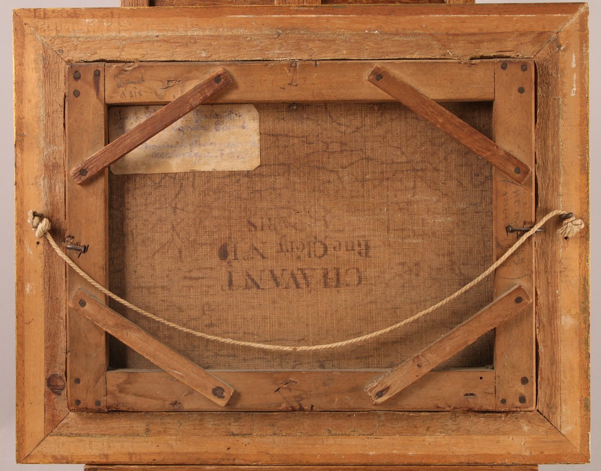 Toile avec le cachet au pochoir du marchand "CHAVANT / Rue Cléry N°. 19 / A PARIS" actif entre 1827 et 1845 au dos.