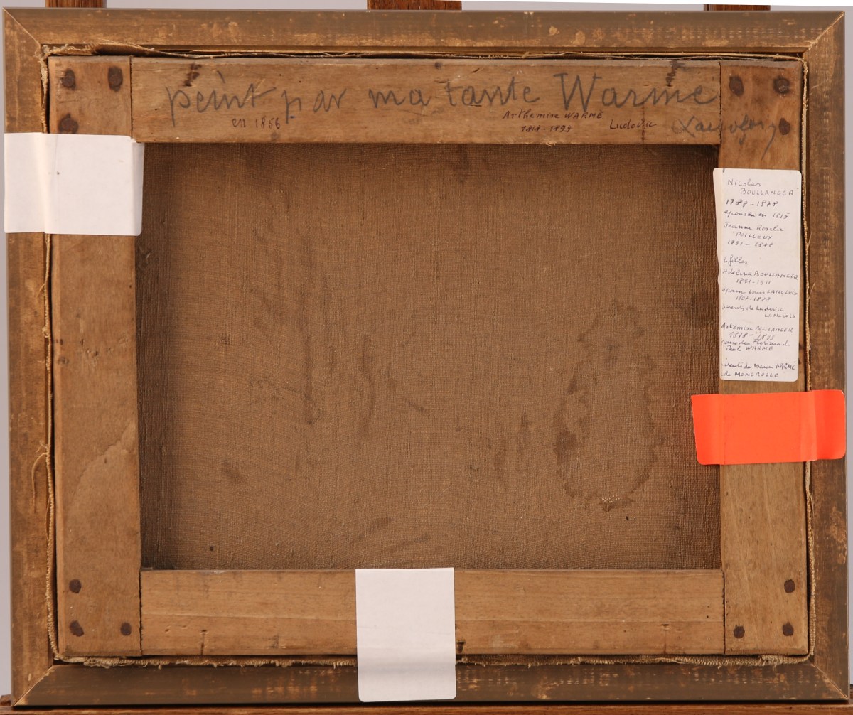 Inscriptions manuscrites au dos : "peint [en 1856] par ma tante Warmé [Arthémise Warmé 1818-1899] / [Ludovic] Langlois".
