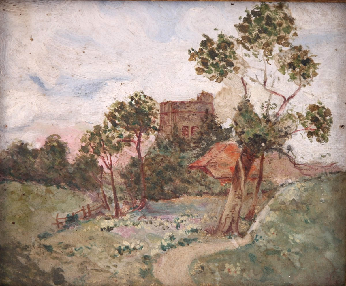 JOINT : École FRANÇAISE de la fin du XIXe. Église de campagne. Carton fort. 12,5 x 15,5 cm.