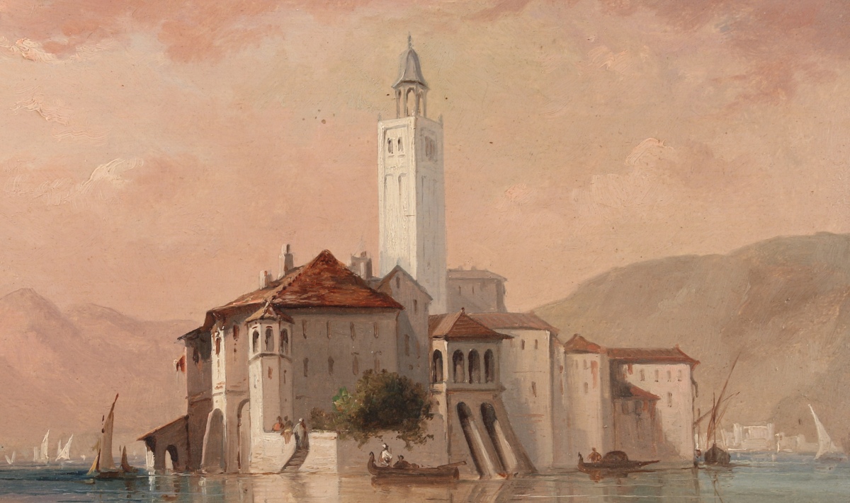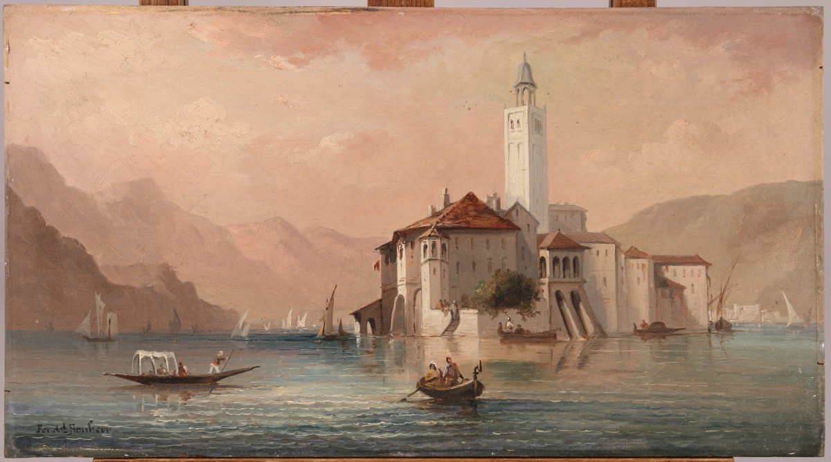 Ferdinand BONHEUR (1817-1887)Lac italien, d'Orta ? île Saint Jules ?Huile...