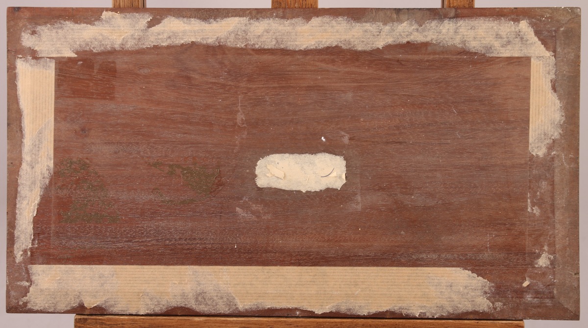 Huile sur panneau, signée en bas à gauche.