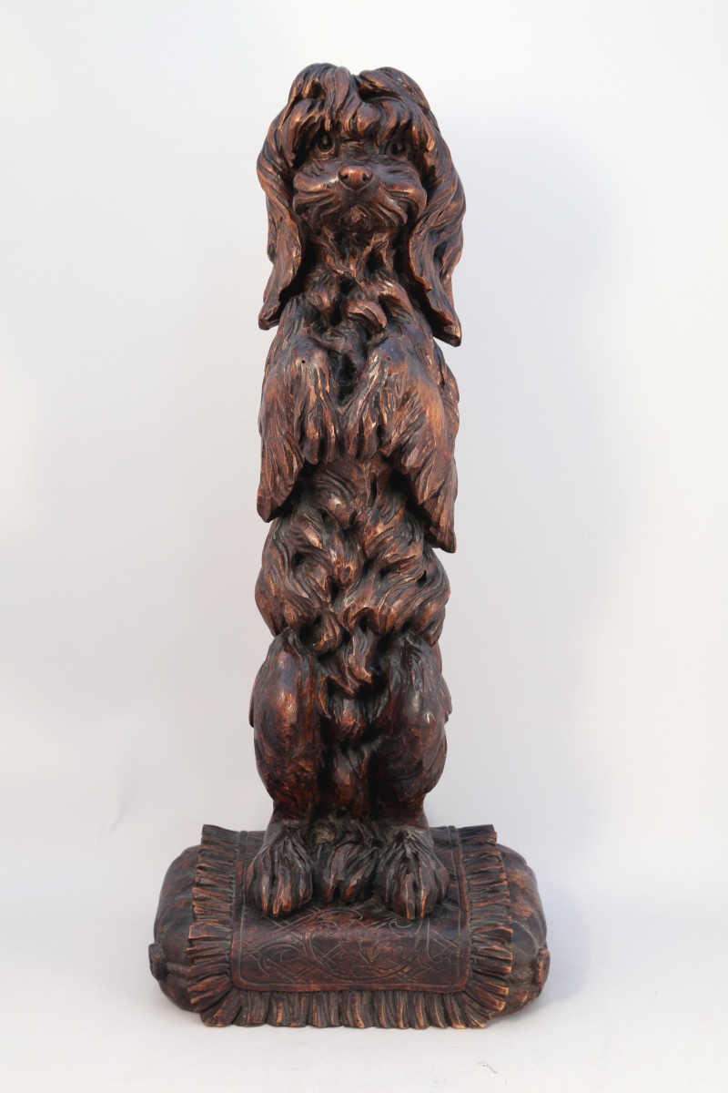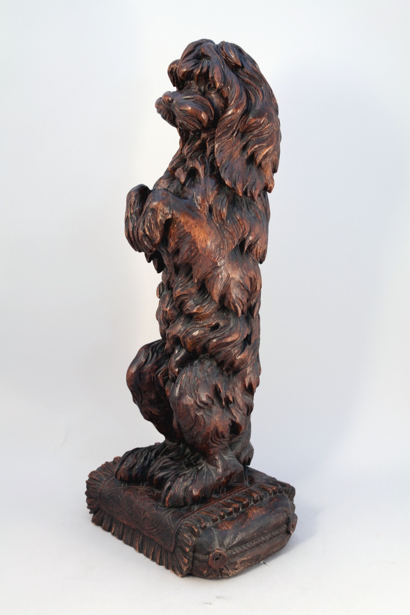 - CANICHE faisant le beau, dressé sur un coussin. Haut. 68, Larg. 29 cm.