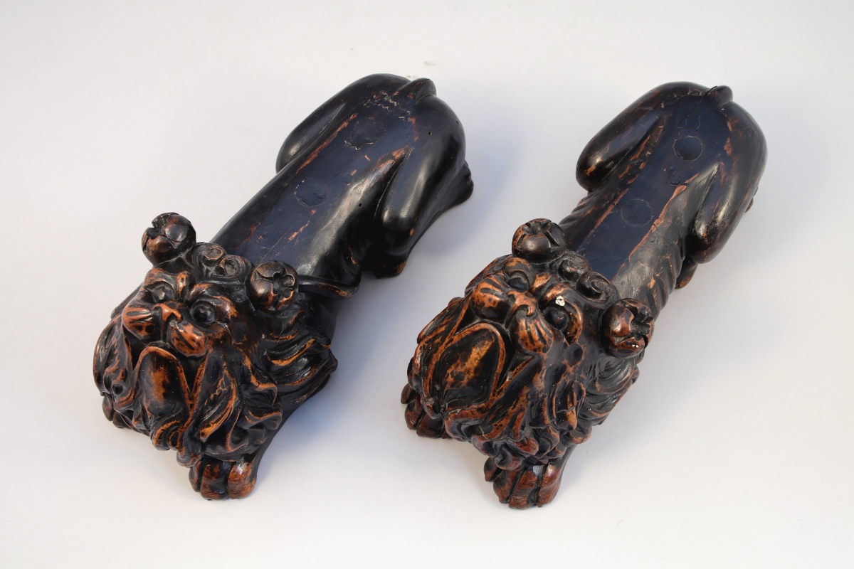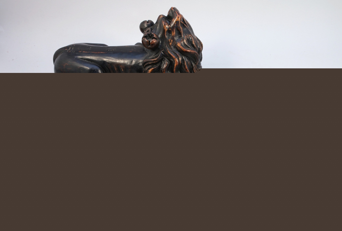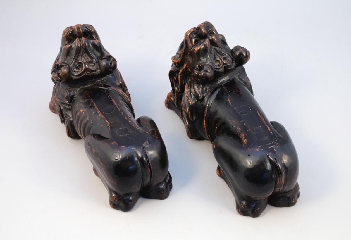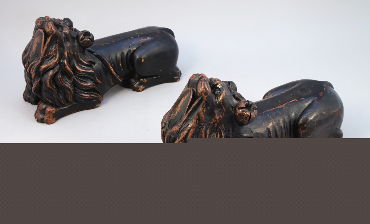- PAIRE DE CHIENS formant autrefois piètement. Style Renaissance. Haut. 20, Long. 35 cm.