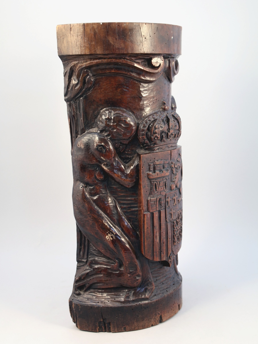 - ÉLÉMENT DÉCORATIF aux armes d'Espagne. Haut. 60, Larg. 31 cm.
