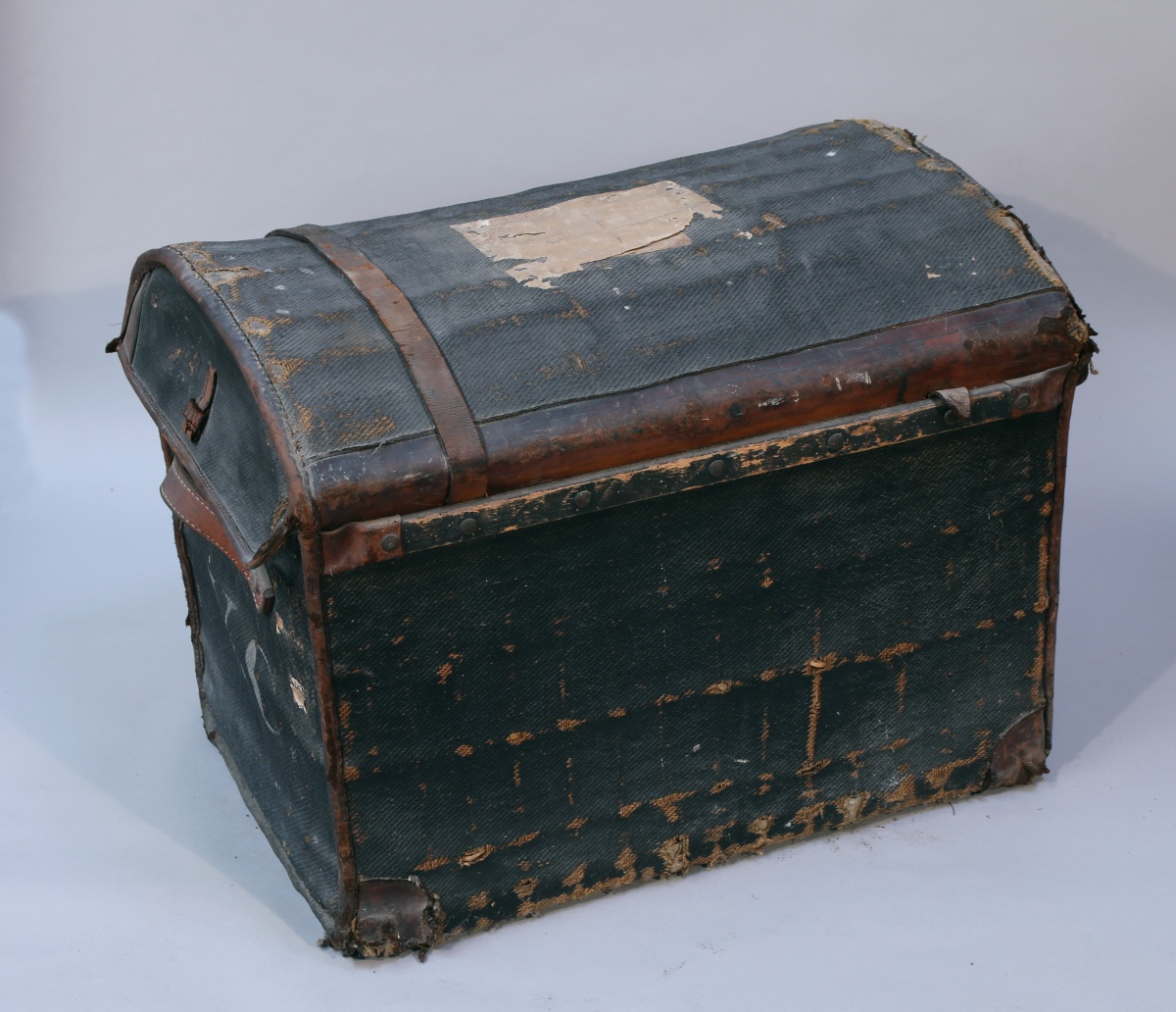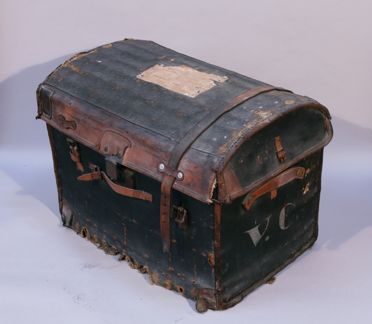 en osier recouvert de toile enduite et renforts de cuir. Monogrammée "VC" sur les côtés. Intérieur garni de toile. Fin XIXe - début XXe.