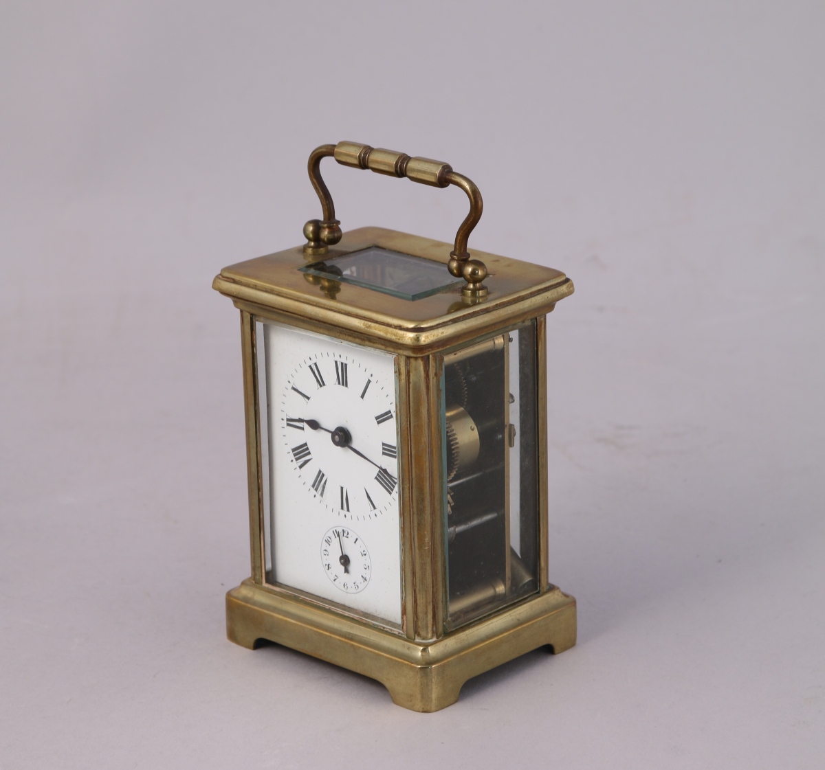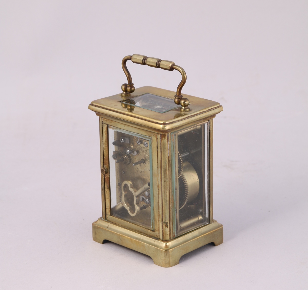 dite pendulette d'OFFICIER en laiton doré. Verres biseautés. Fin XIXe-début XXe.