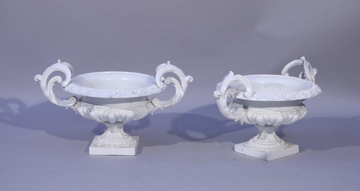 à anses enroulées, vasque à godrons en fonte de fer de style XVIIIe. Époque XIX-XXe.