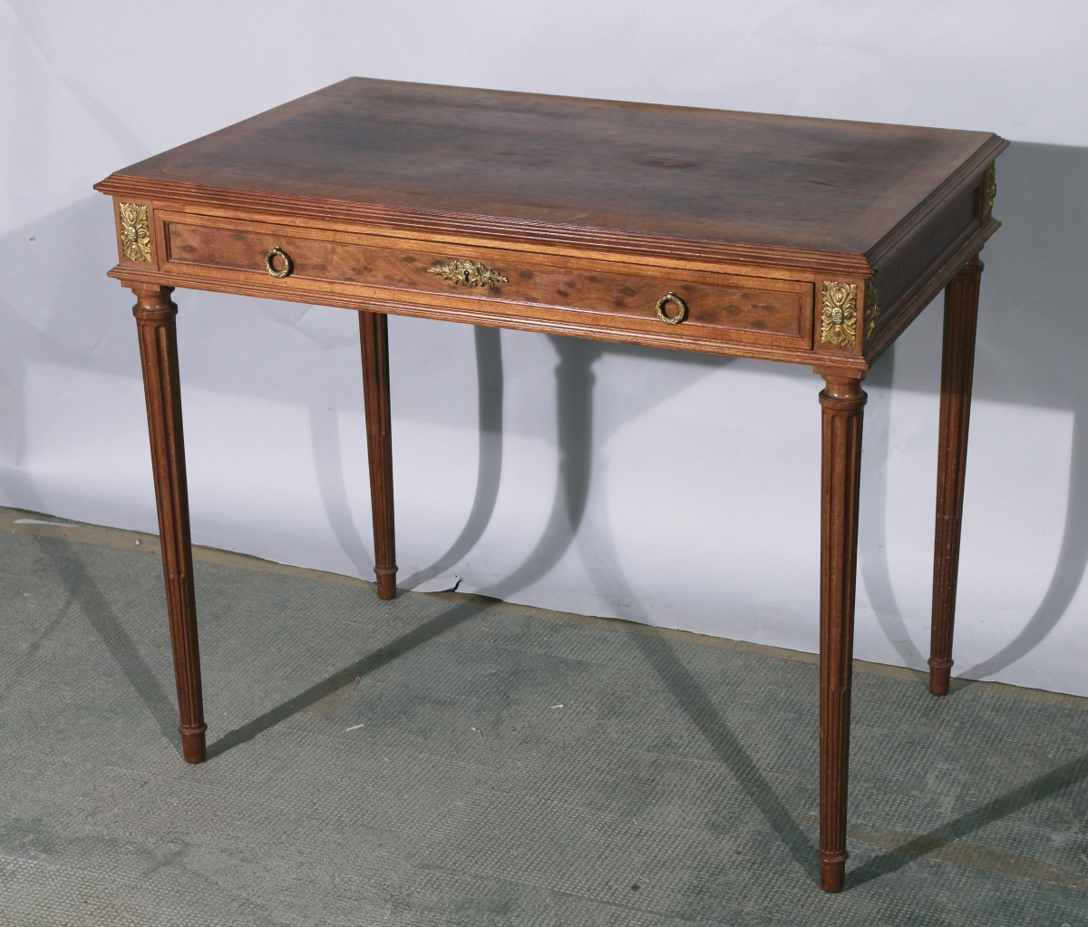 TABLE-BUREAU plat en placage d'acajou moucheté