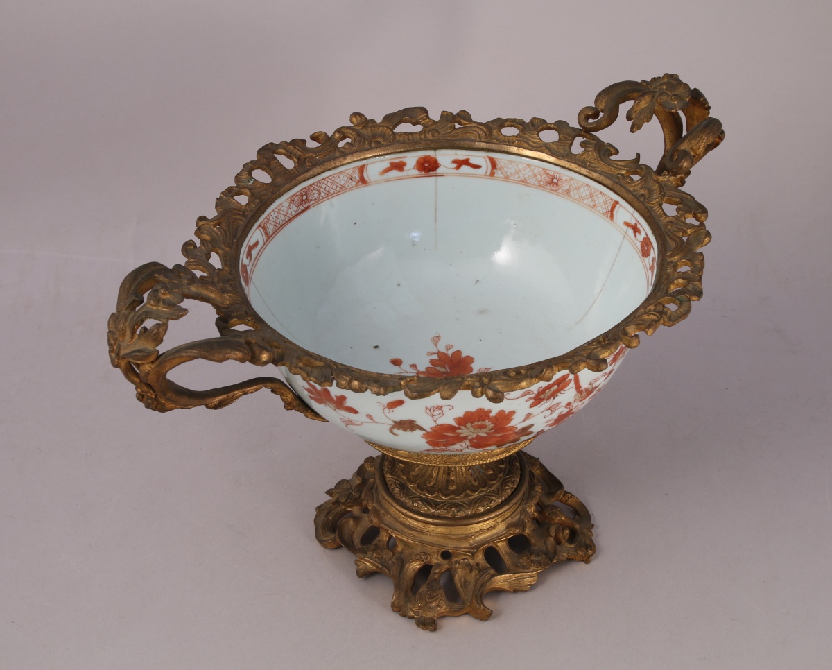 Le bol en porcelaine de Chine, du XVIIIe monté au XIXe dans le style Louis XV.