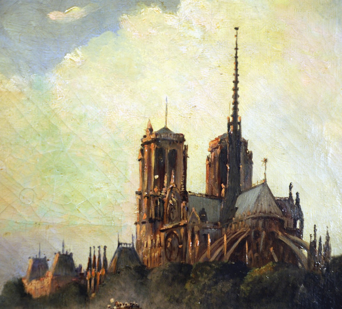 Vue animée du pont de l'Archevêché et du chevet de Notre-Dame.