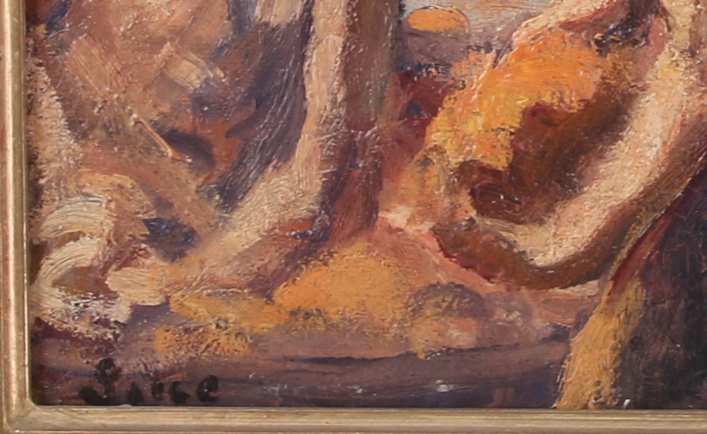 Huile sur carton signée en bas à gauche et titrée au dos.