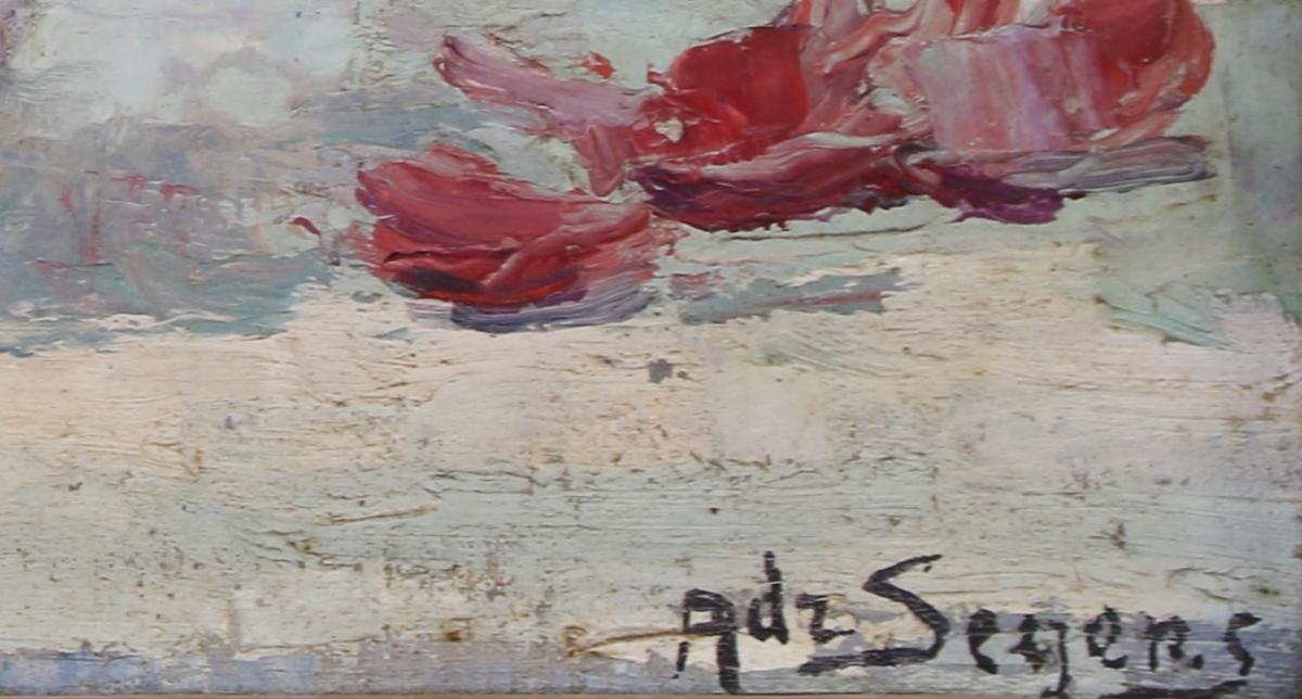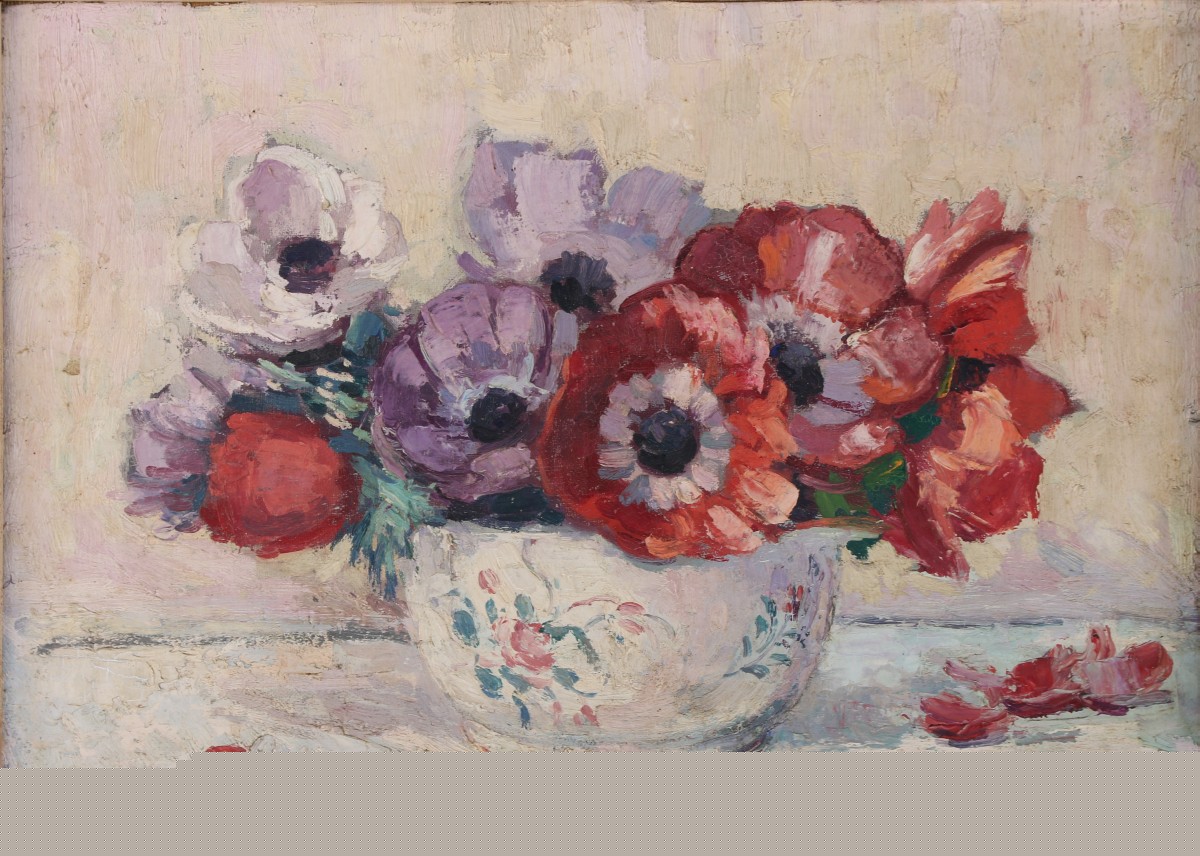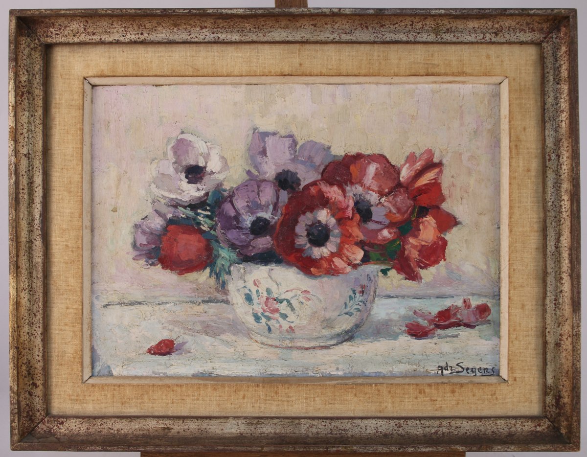 Adrien SEGERS (1876-1950)Bouquet d'anémones.Toile marouflée sur carton signée en bas...