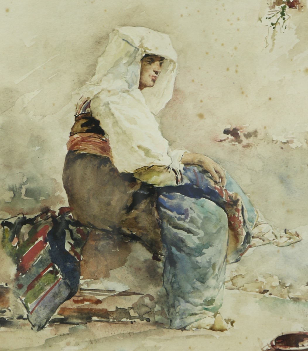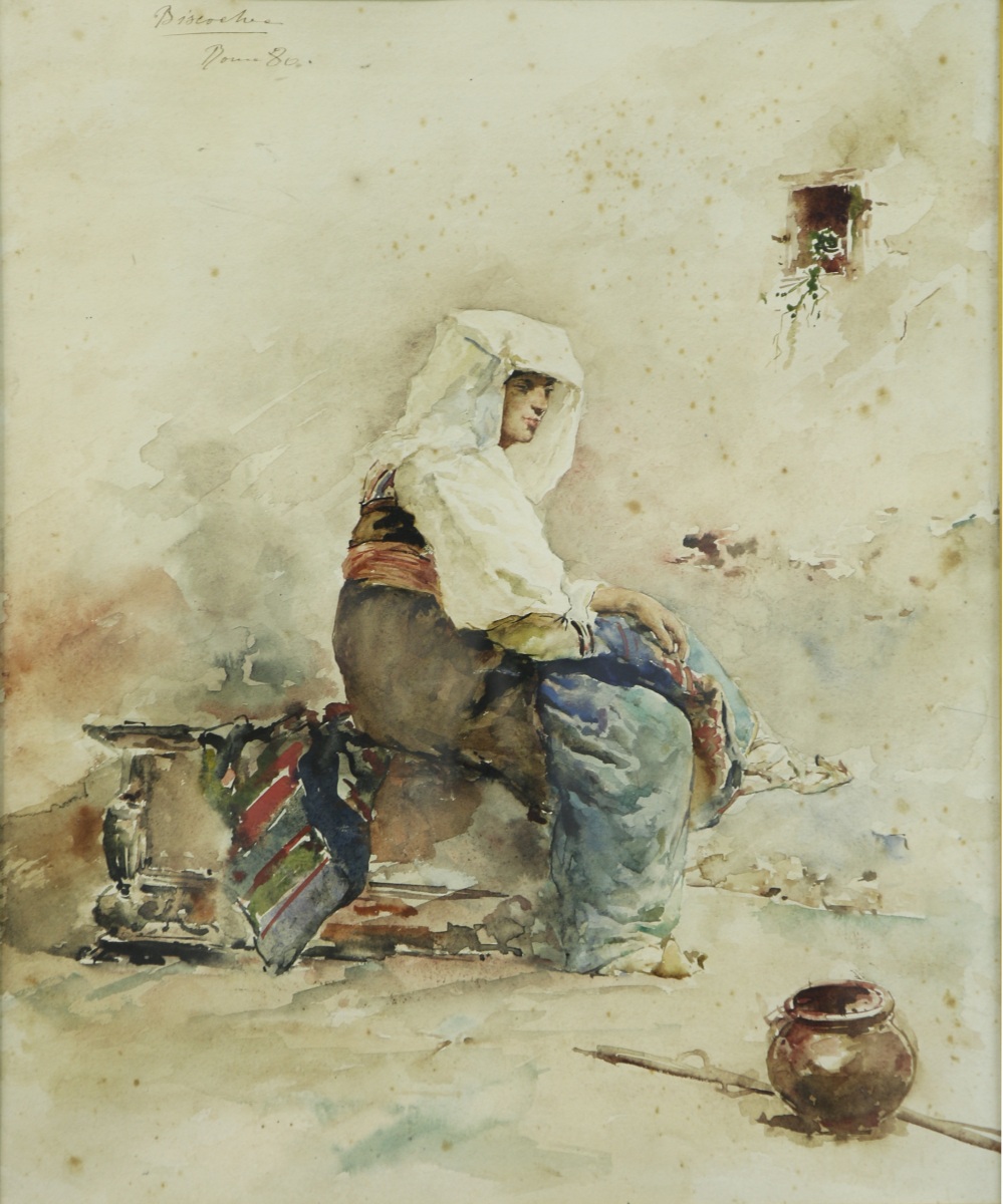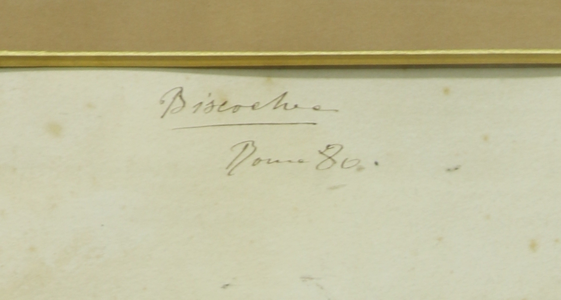 Aquarelle, signée "Biscoche?", située Rome et datée 80 en haut à gauche.