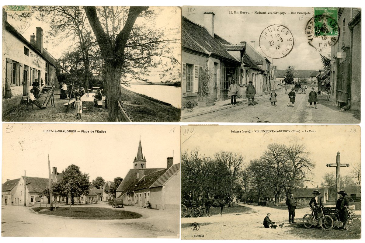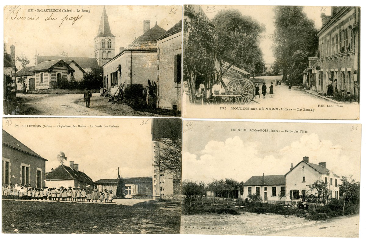 [BERRY] INDRE et CHER : env. 270 cartes postales anciennes et cpsm : villes, villages, animations, sites et châteaux, scènes et types folkloriques.