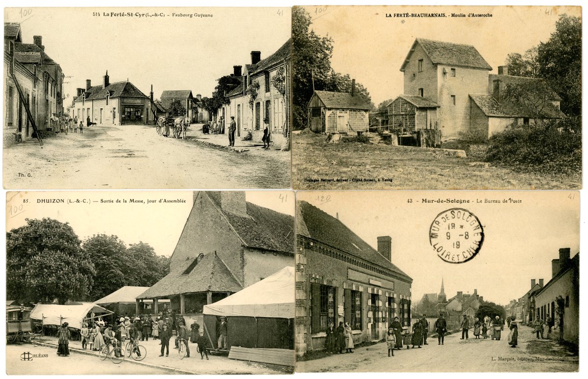 [LOIR-ET-CHER] Sologne : env. 155 cartes postales anciennes, cpsm et divers : villes, villages, animations, sites, églises et châteaux, scènes et types.