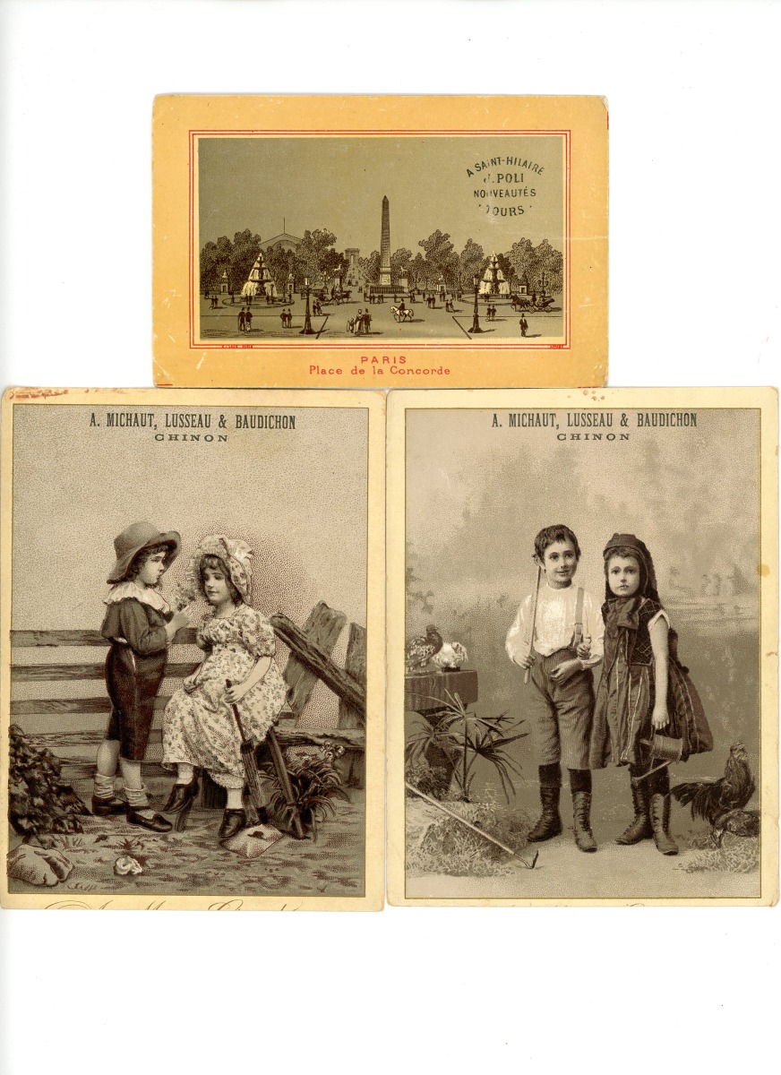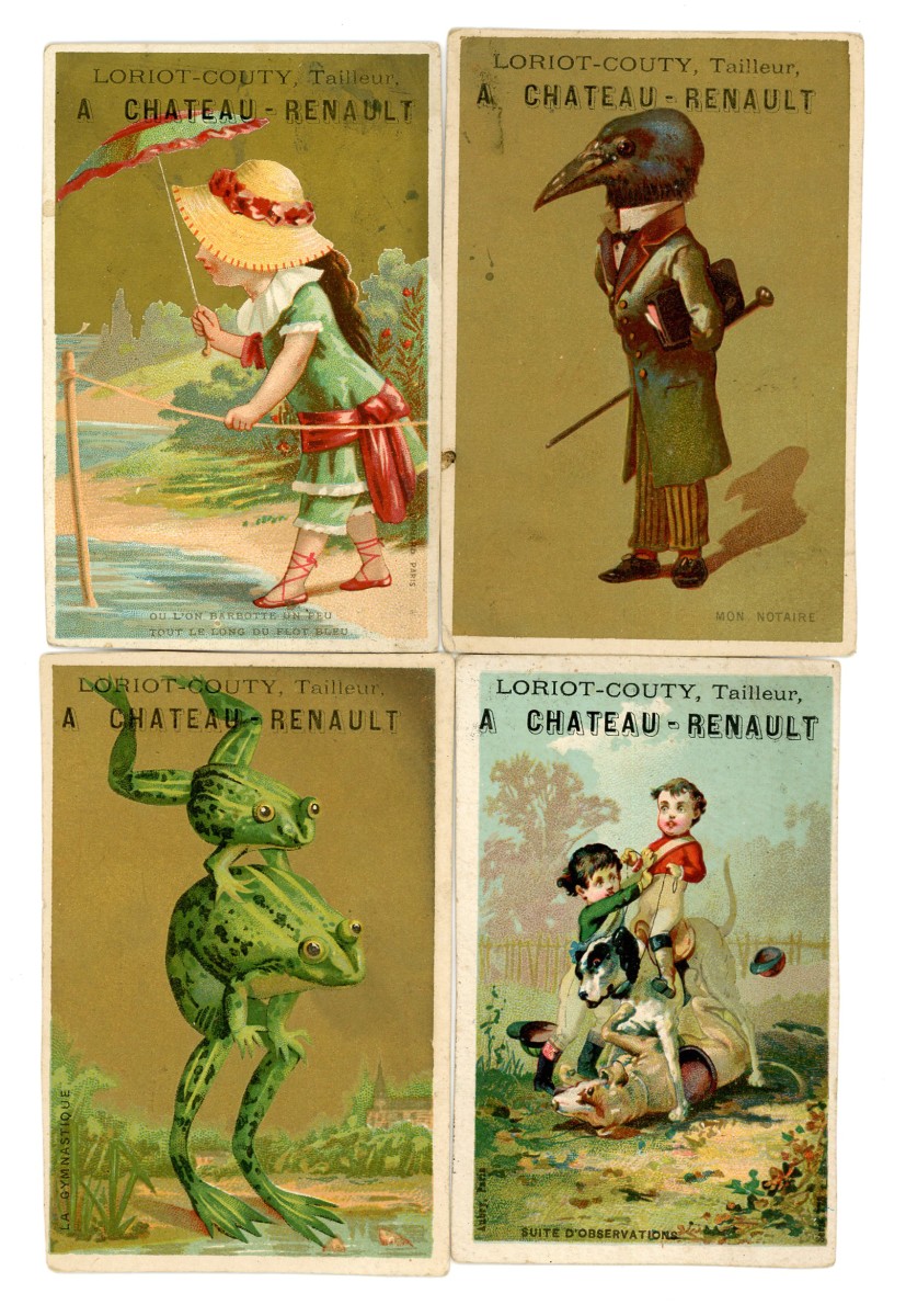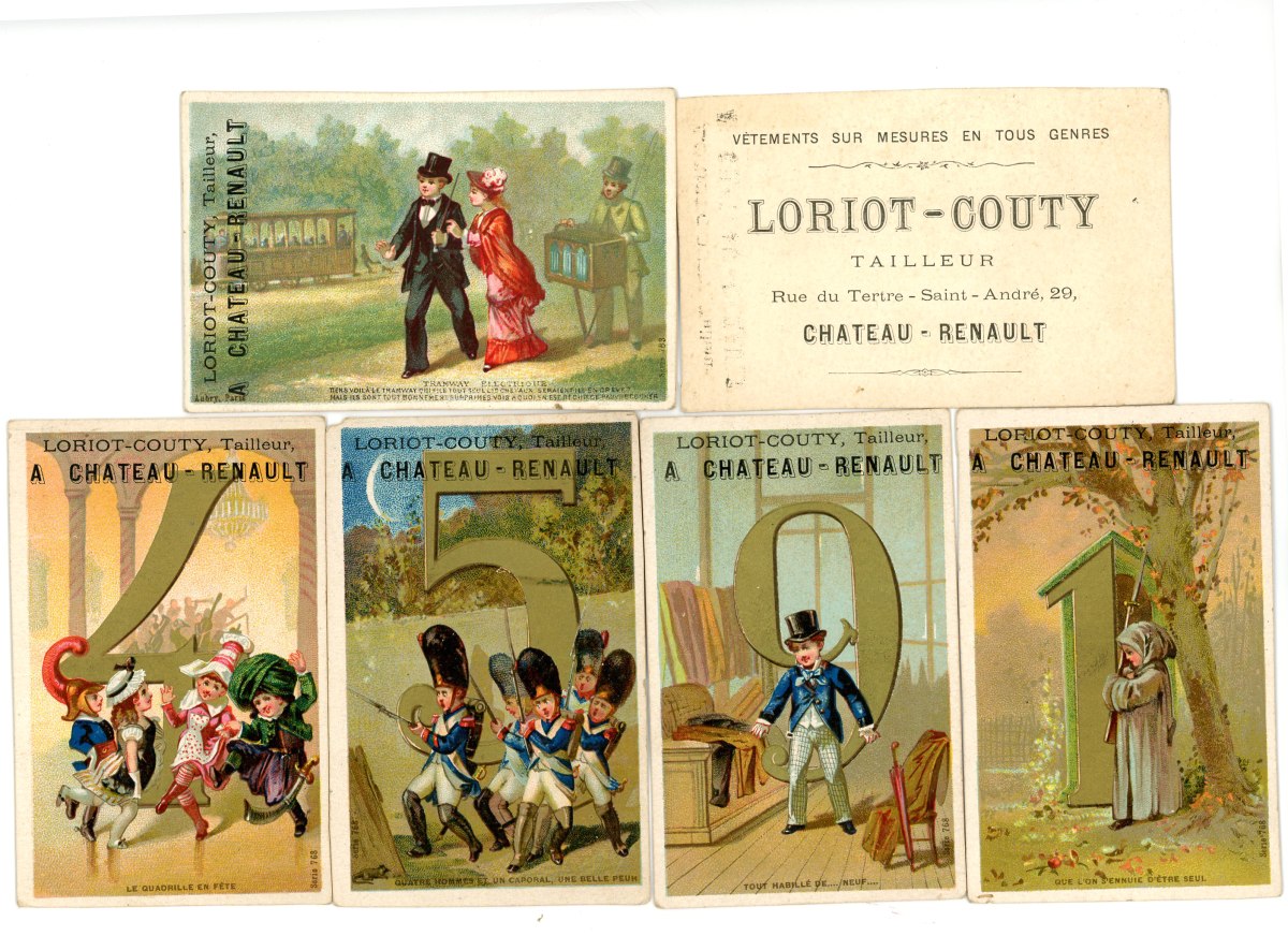 [IMAGERIE] Indre-et-Loire : 45 chromos et images : Loriot-Couty tailleur à Château-Renault [22 p.], Bessière Garnier rouennerie à Château-Renault [5 p.], Reboussin-Hahusseau modes et lingeries à Château-Renault [3 p.], Paul Fourmy toiles à Château-Renault [1 p.], " Au Luxembourg " à Château-Renault [11 p.], J. Poli nouveautés à Tours, " Au Printemps " à Château-Renault [1 p.], Michaut, Lusseau & Baudichon à Chinon [3 p.].