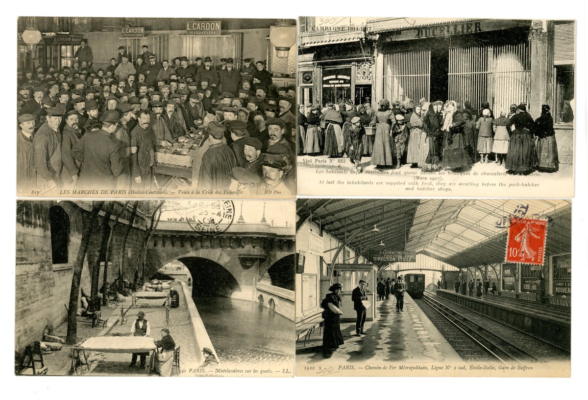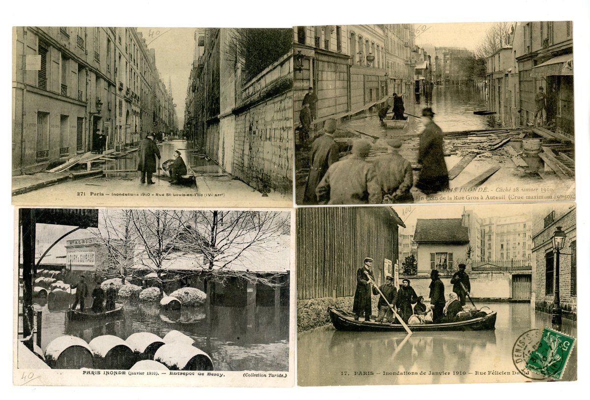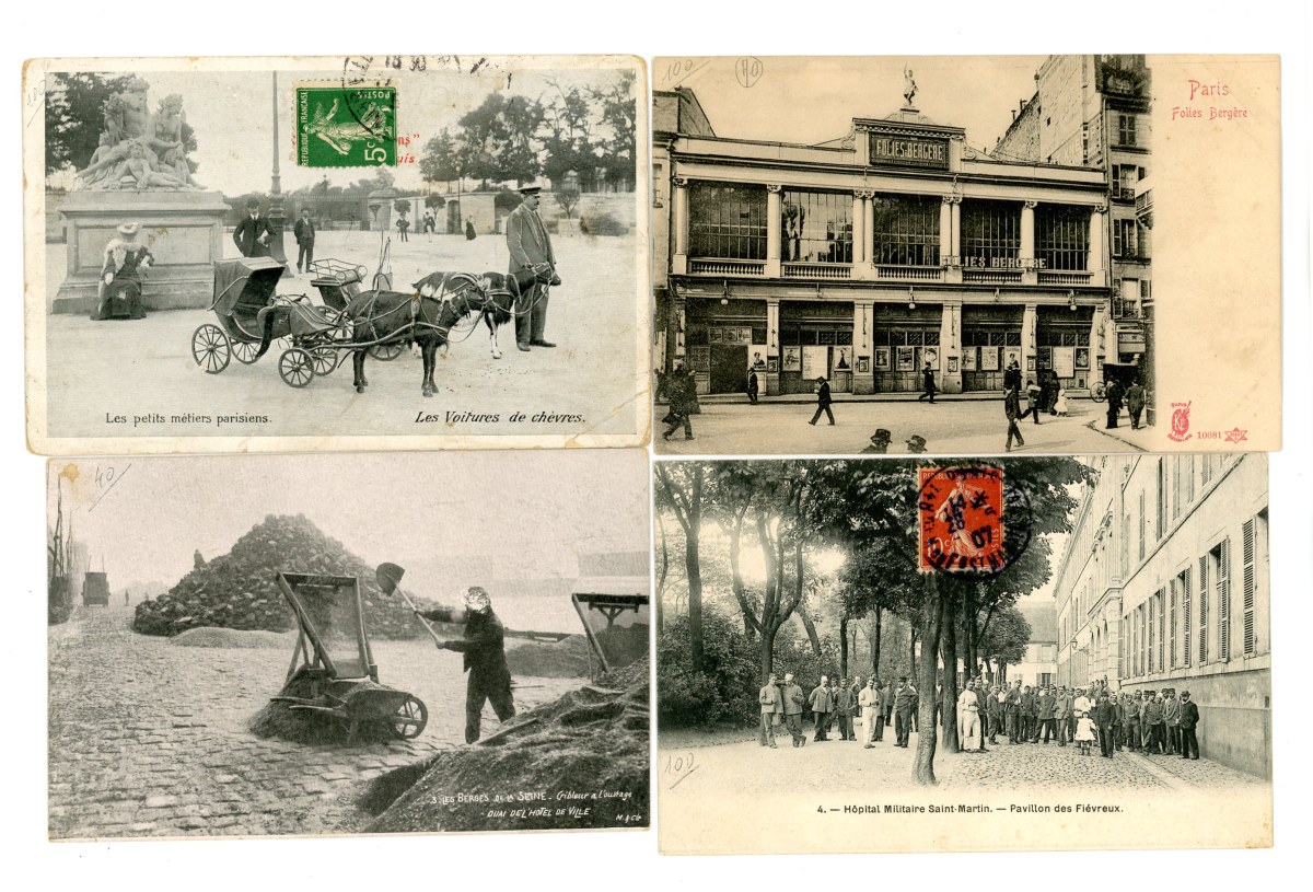 [PARIS] Env. 600 cartes postales anciennes et cpsm, en album, monuments, bâtiments, rues, places, gares, églises, ponts, crues, vieux métiers, etc.