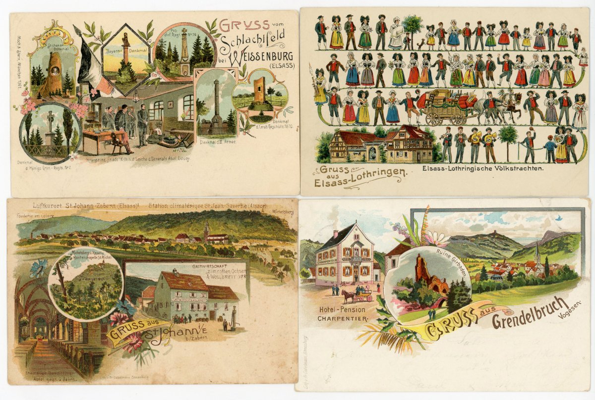![Lot 30 - [ALSACE-LORRAINE] Env. 105 cartes postales, en majorité écrites et voyagées,... [ALSACE-LORRAINE] Env. 105 cartes postales, en majorité écrites et voyagées,...](<150:ddoc-725668-07bfd0b9f6d4f28a641e5a9f64956fd5-p100201716600073.jpg, <480:ddoc-725669-d97d19b6e3b87485d9e9e3684487c870-p100201716600073.jpg, <640:ddoc-725670-6bcd7d73294ee07784787d2846fae094-p100201716600073.jpg, <900:ddoc-725671-6a971bbc5edd75b911c7e6befbd0d7ef-p100201716600073.jpg, >900:ddoc-725667-11fc05297f00c1101ecbbfd4ce165850-p100201716600073.jpg)
