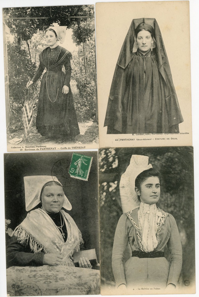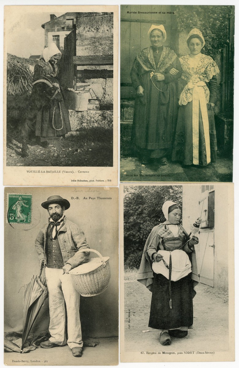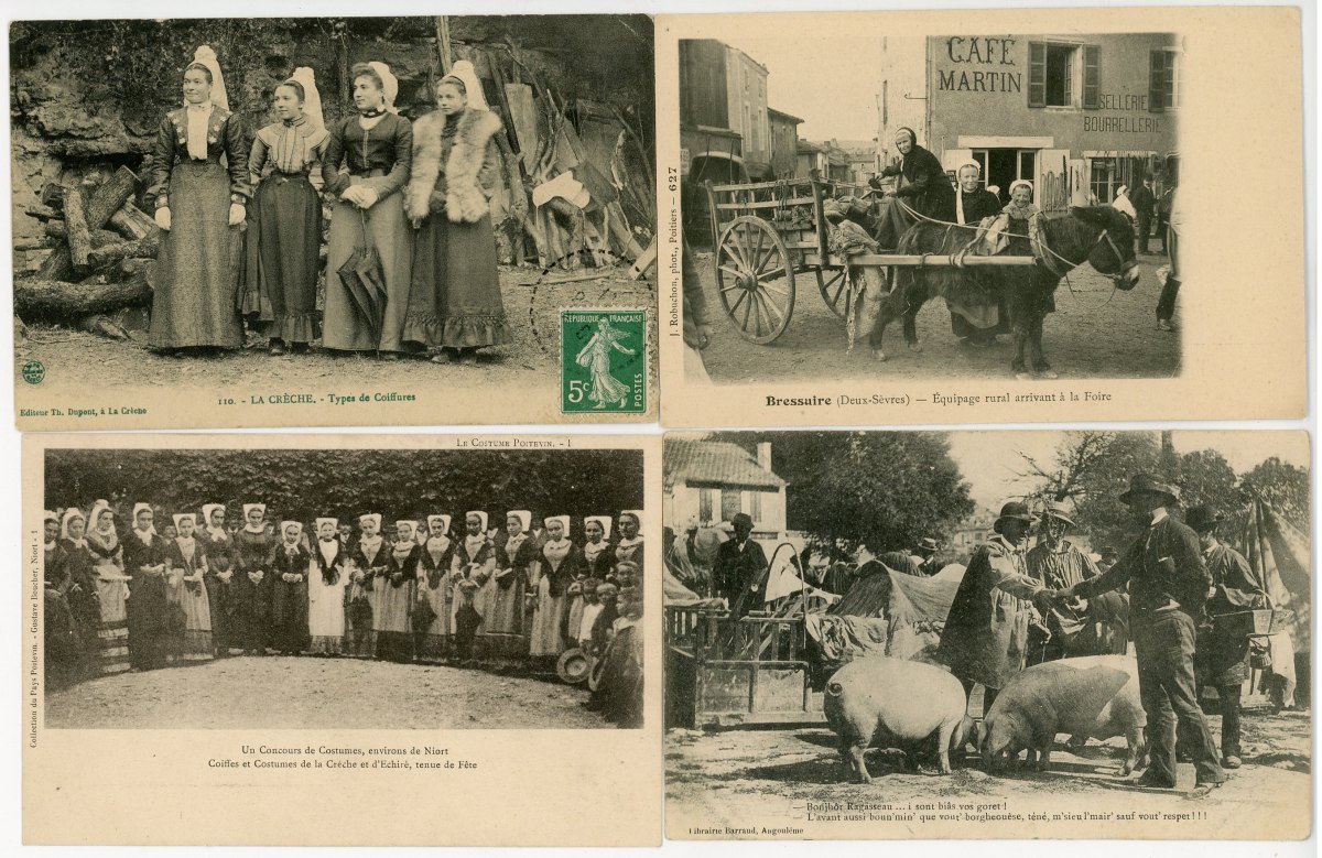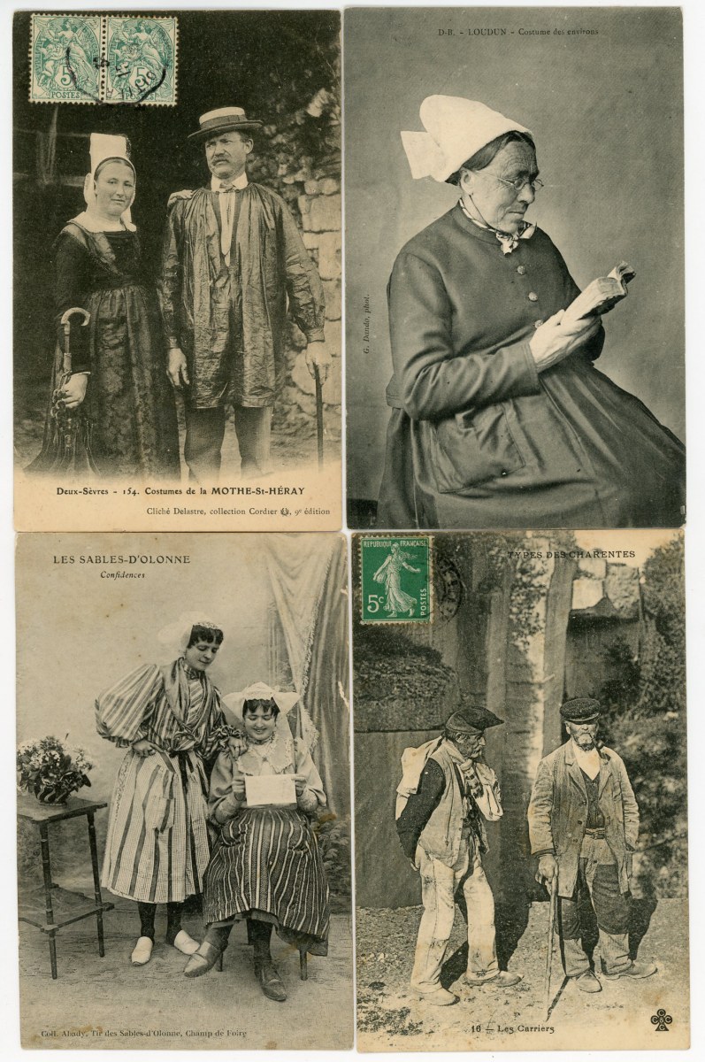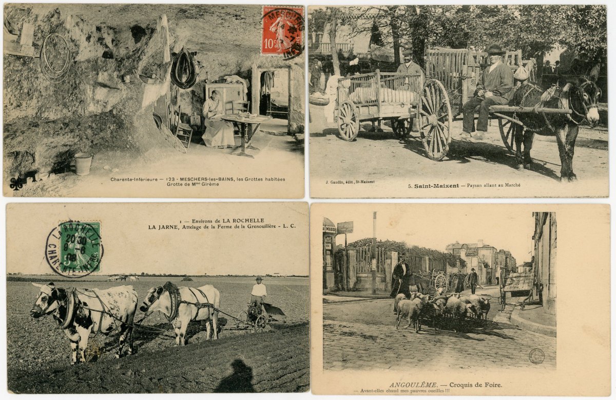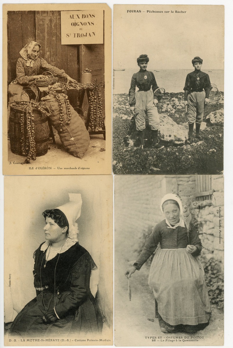 [POITOU-CHARENTE/VENDÉE] env. 340 cartes postales anciennes et qqs cpsm, dépts 79-16-17 et 86, en majorité scènes et types folkloriques, qqs animations, etc.