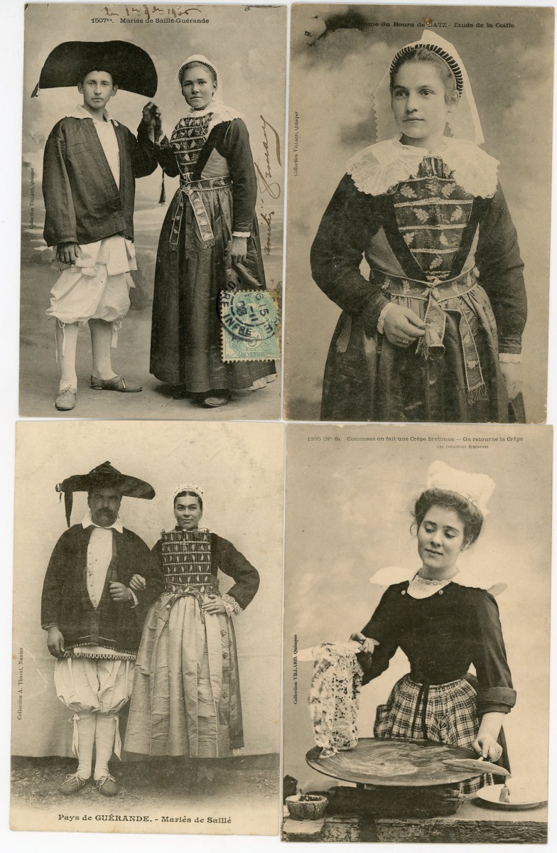 [BRETAGNE] env. 170 cartes postales anciennes et qqs cpsm, principalement scènes et types [env. 70 cp], et villes, qqs villages, ports, plages, animations, etc.