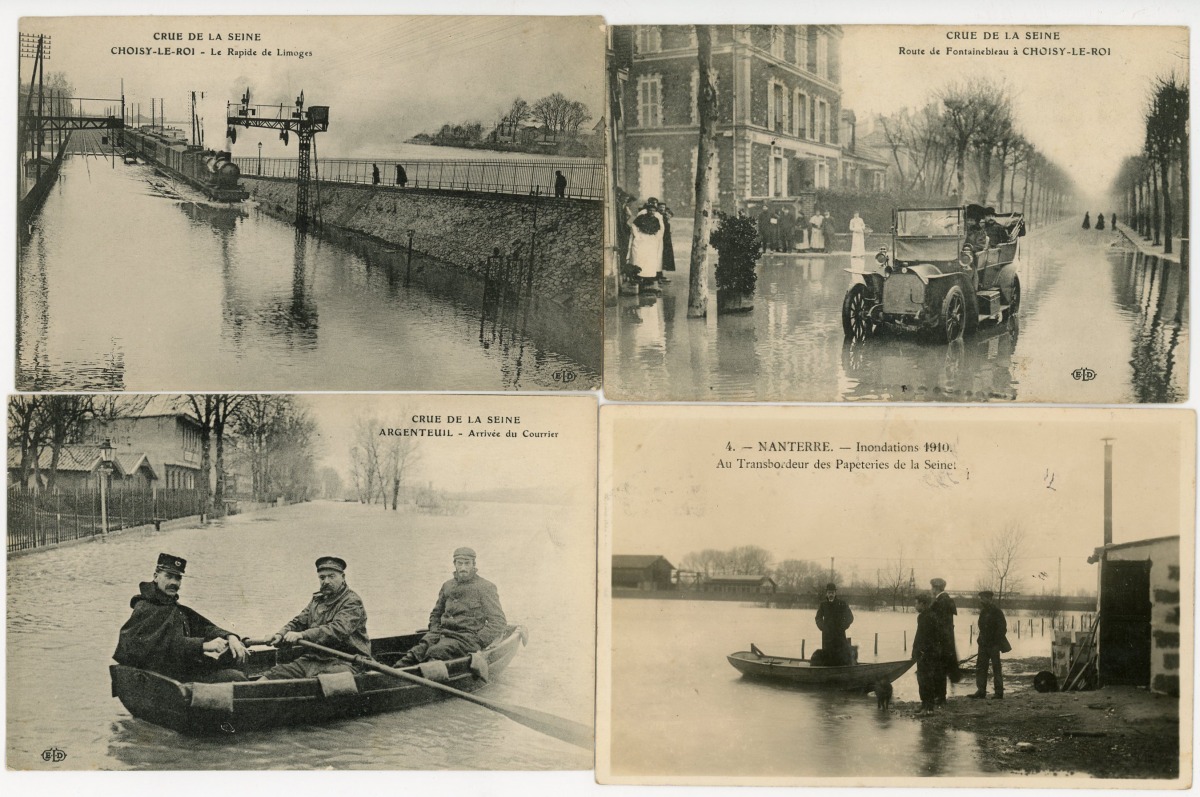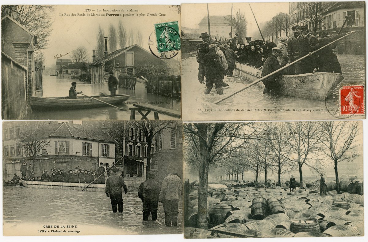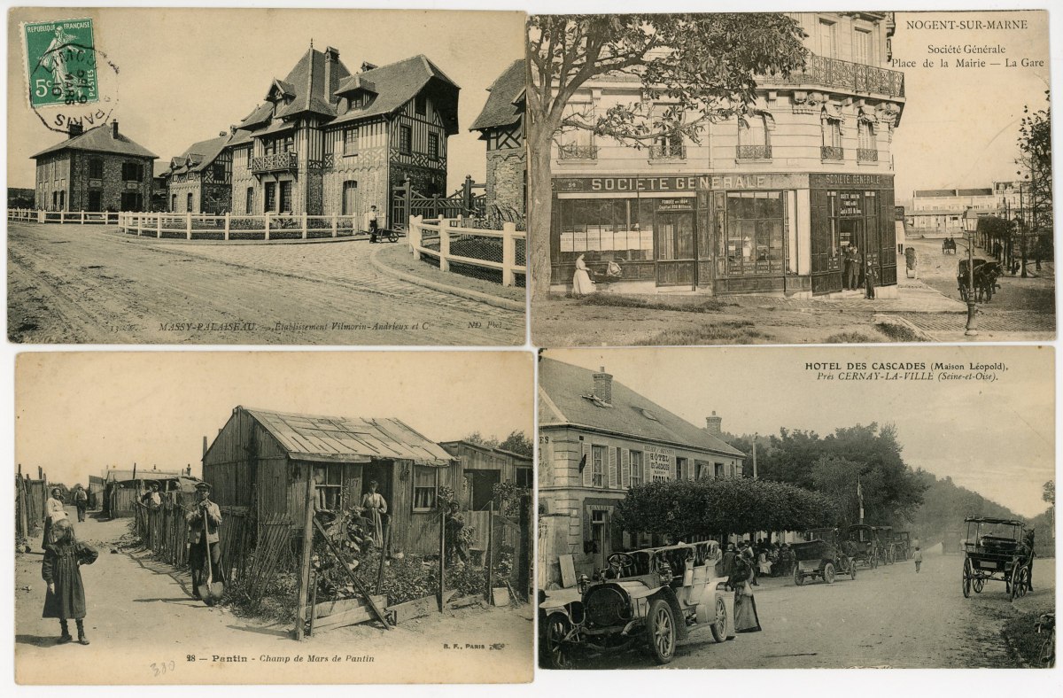 [RÉGION PARISIENNE] Env. 320 cartes postales anciennes et cpsm, dépts 77-78-91-92-93-94 et 95, villes, villages, animations, sites et châteaux, crue de la Seine [41 cp], etc.
