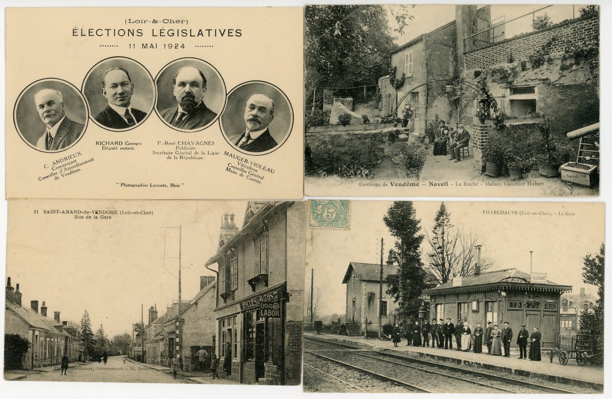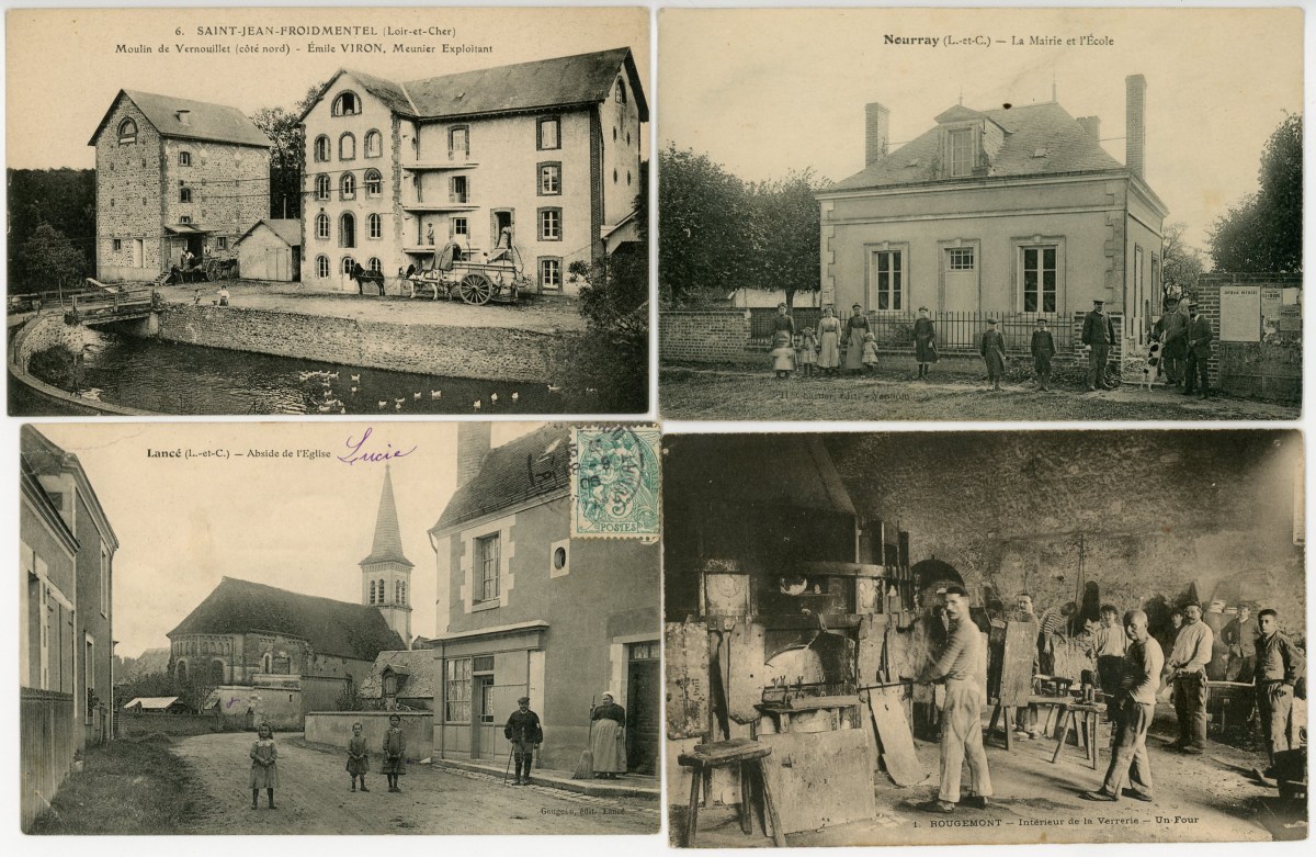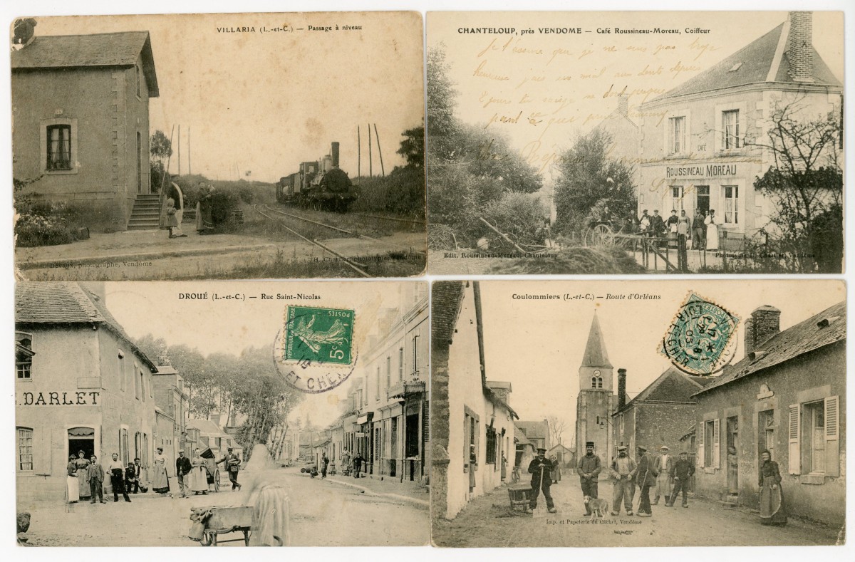 [LOIR-et-CHER] Vendômois : env. 340 cartes postales anciennes et cpsm : villes, villages, rues, animations, châteaux, églises, écoles, gares, etc. Qqs multiples.