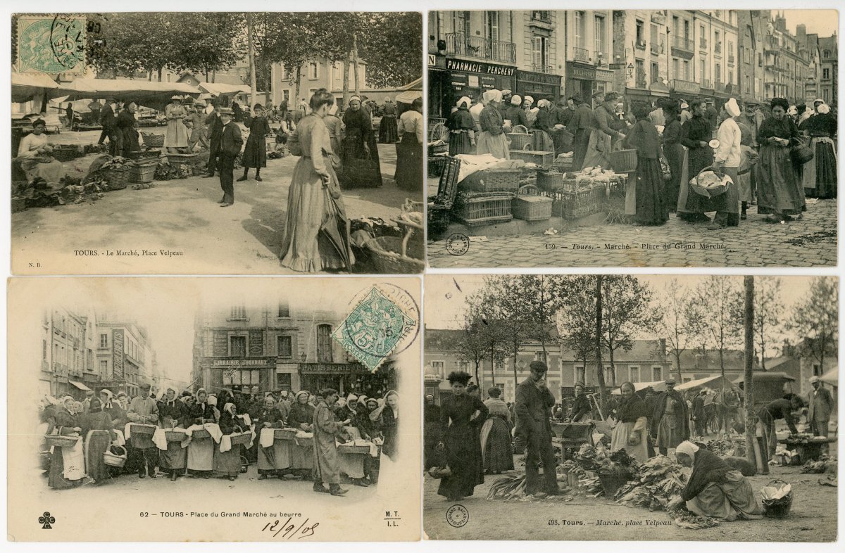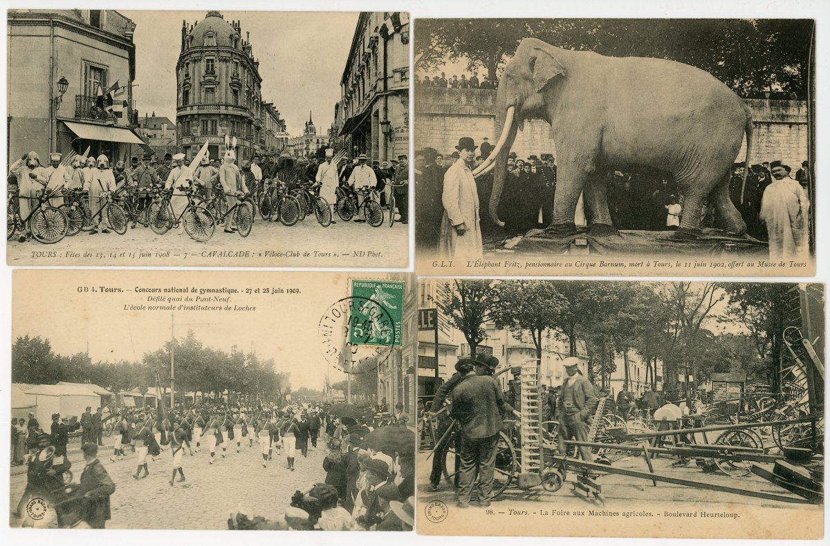 [TOURAINE] Tours : env. 395 cartes postales anciennes et cpsm : rues, animations, églises, marchés, places, gare, ponts, manifestations, etc. Qqs doubles.