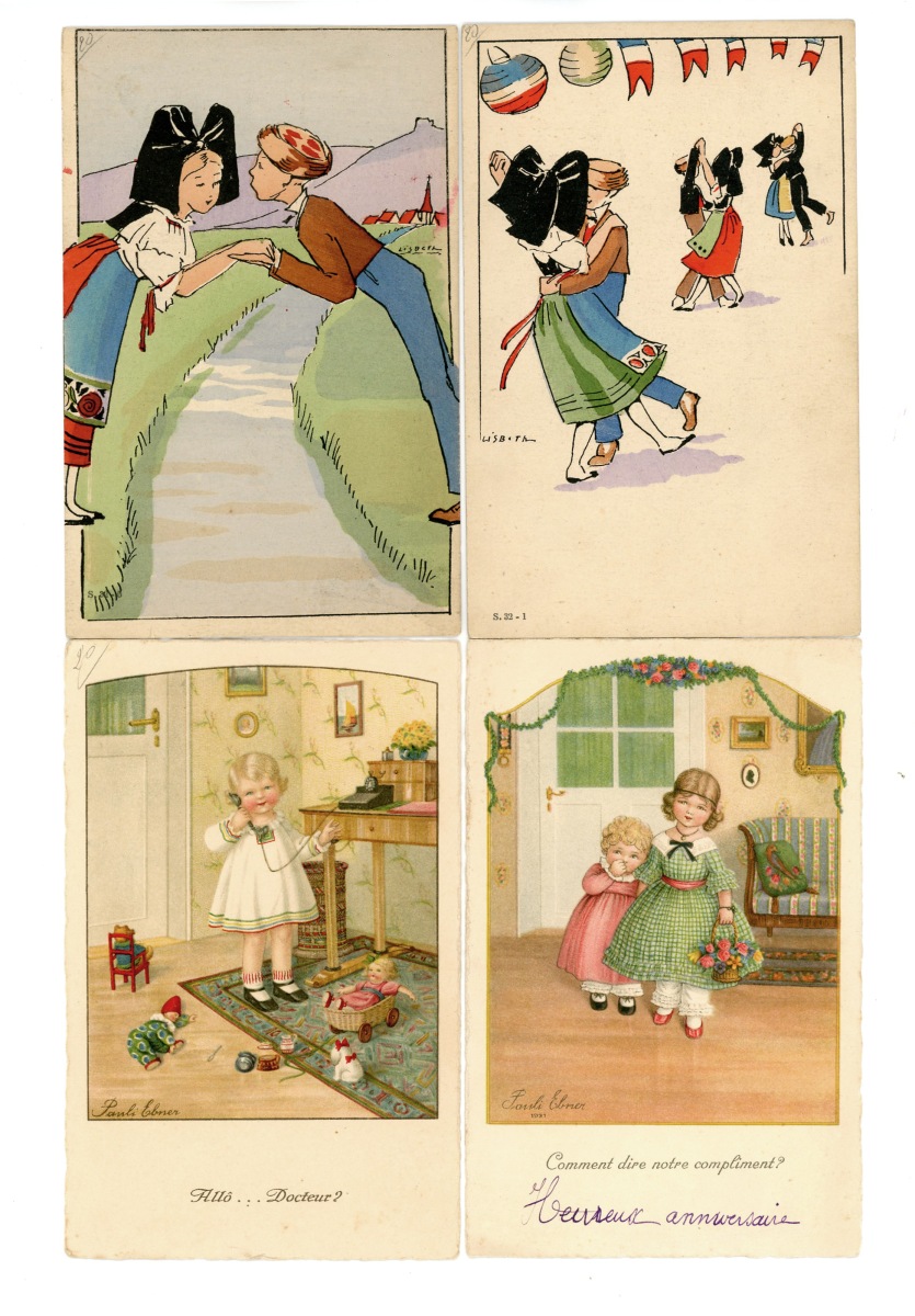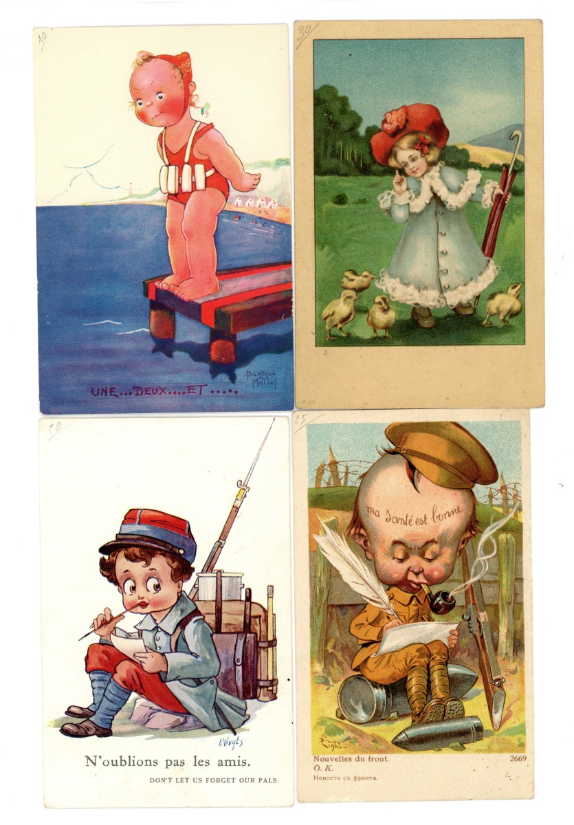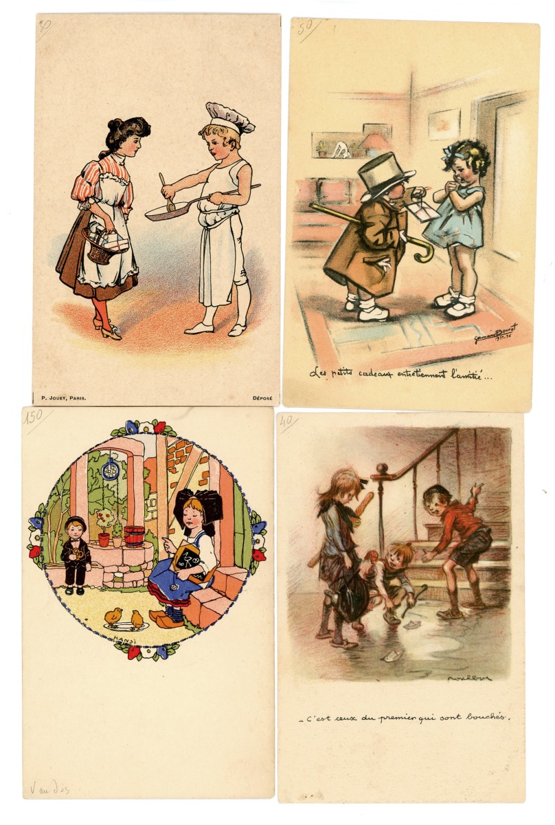 [ILLUSTRATEURS] 45 cartes postales illustrées, thème des Enfants, par Poulbot, Hansi, Germaine Bouret, Lisbeth, Paul Ebner, Louis Brau, etc.