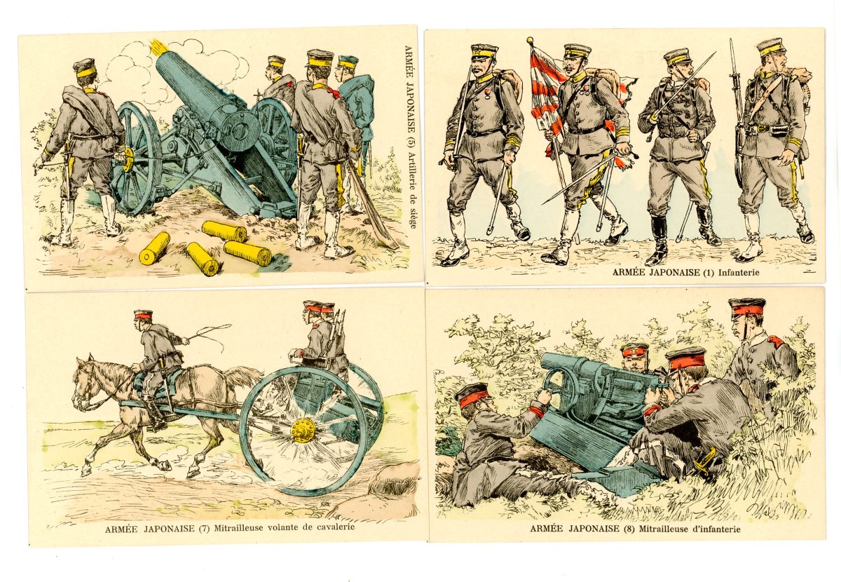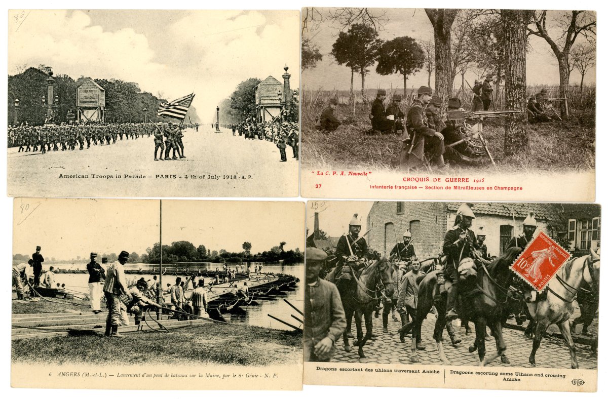 [MILITARIA] env. 465 cartes postales Militaria et Guerre 14-18 : camps et casernes, manuvres, groupes de soldats, obsèques, défilés, dommages de guerre, cartes patriotiques et humoristiques, etc. Dont 15 cp illustrées, non circulées et ni écrites, " Armée japonaise " et " Marine japonaise " ; cartes photos de groupes dont 7e régiment du génie à Angers, 162e RI avec fourragères, 17e régiment d'artillerie, 152e RI à Gérardmer, 94e régiment d'infanterie, 94e RI à Rémilly avec groupe de fanfare, 32e RI à Tours, 4 cp 12e chasseurs alpins, etc.
