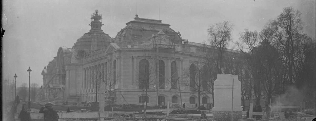 Vues de Paris et sa banlieue (dont Neuilly-sur-Seine) : scènes animées de rue (dont rue Brémontier), églises, monuments (construction du Petit Palais, Tour Eiffel