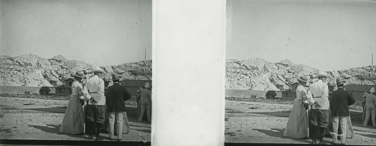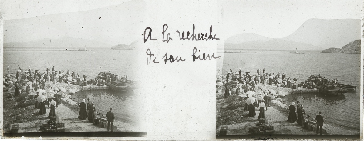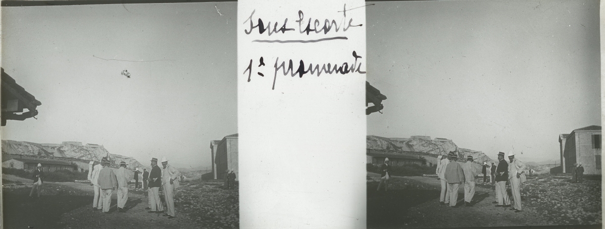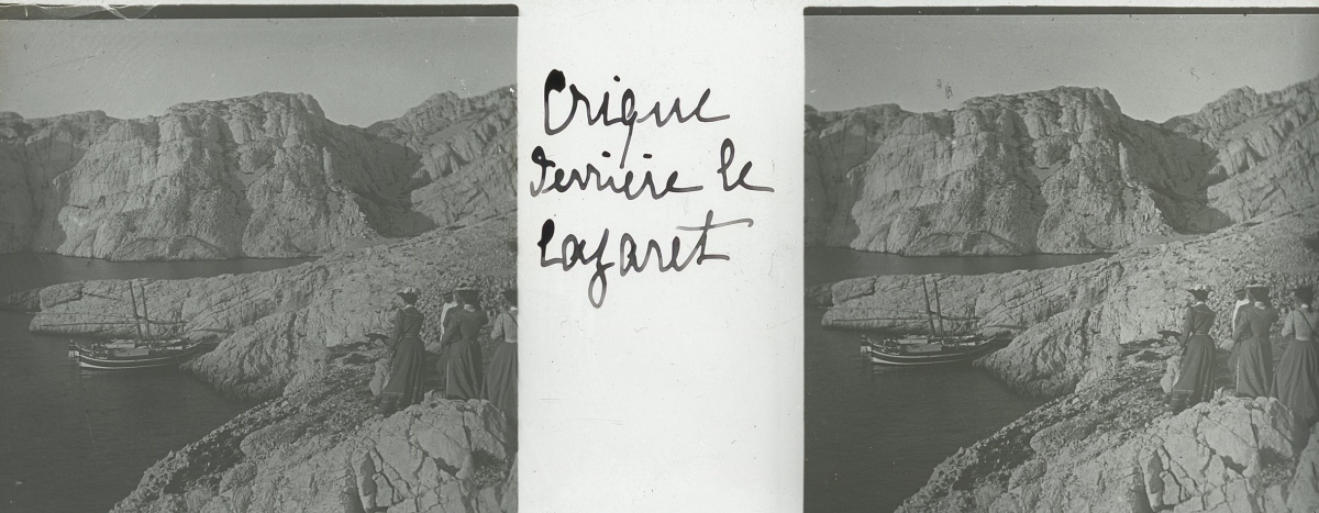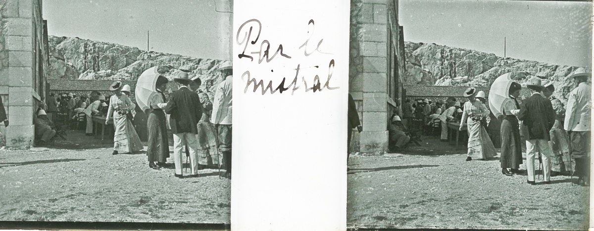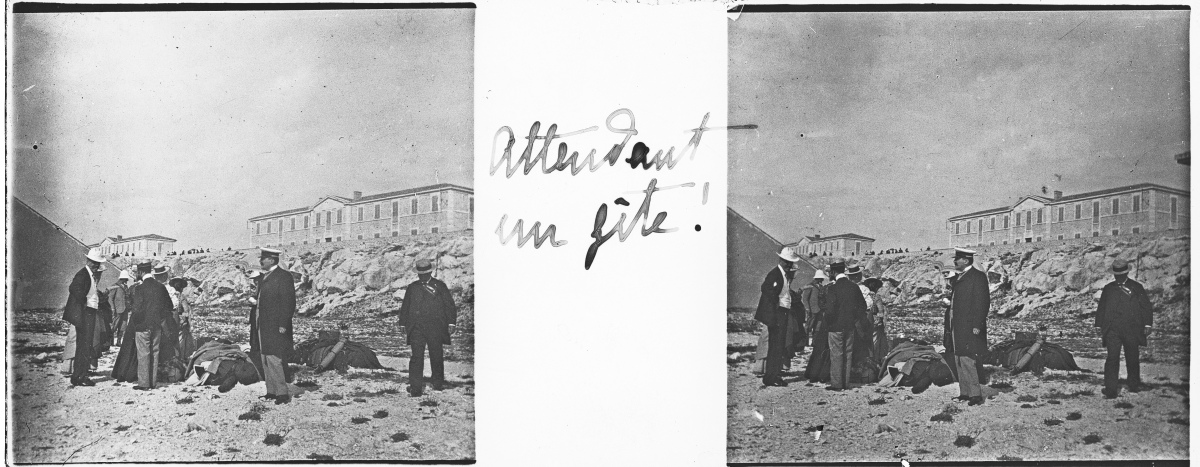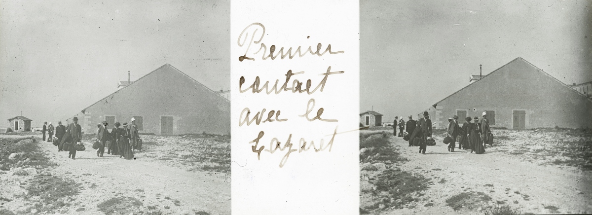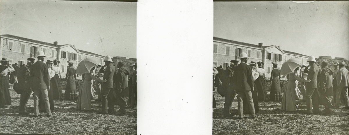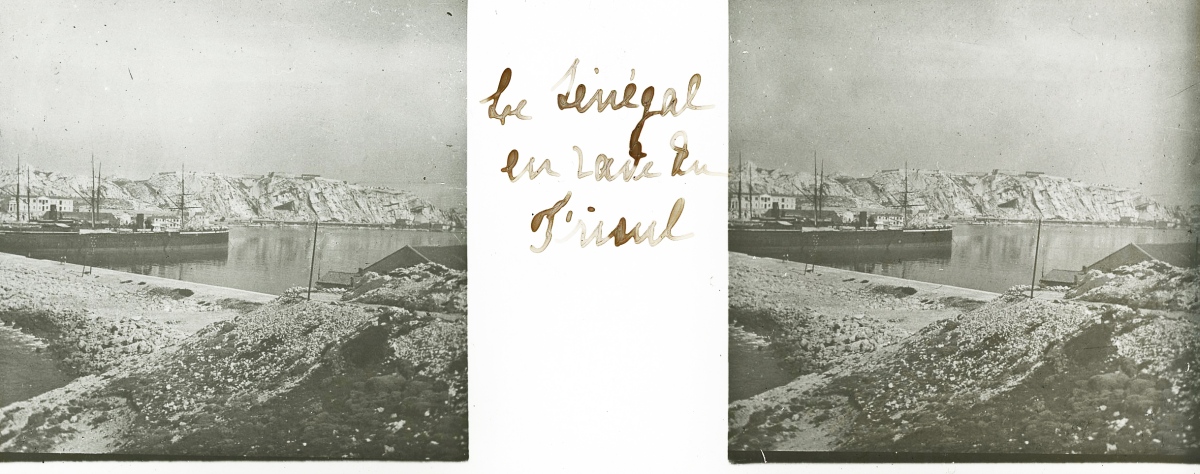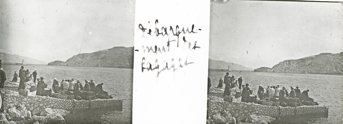 [Frioul - Peste] 51 plaques de verre stéréoscopiques positives, 12 x 9 cm, en majorité légendées, prises par Henri COUTROT, en septembre 1901. Rares vues inédites de la mise en quarantaine des passagers du paquebot de croisière " Le Sénégal " sur l'île de Frioul en septembre 1901 : à bord du " Sénégal ", le paquebot " Ernest-Symons ", port du Frioul, lazaret " hôpital Caroline ", etc.