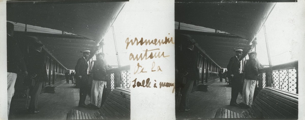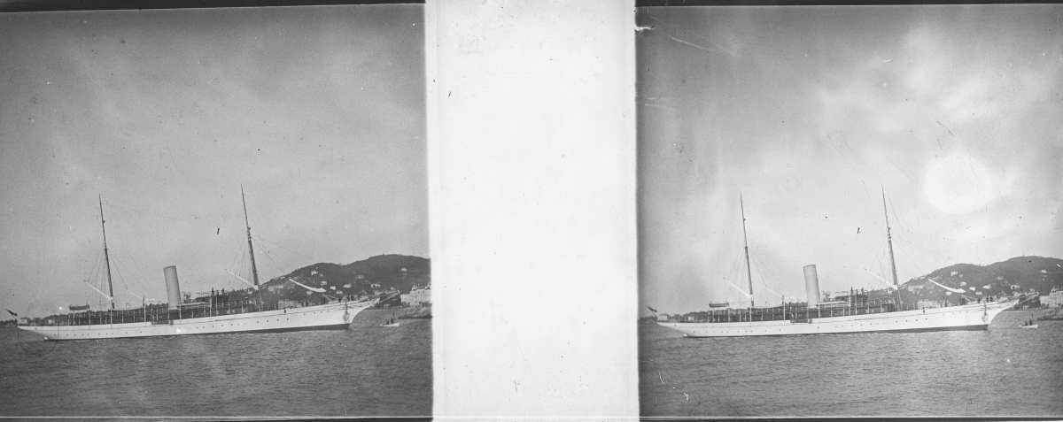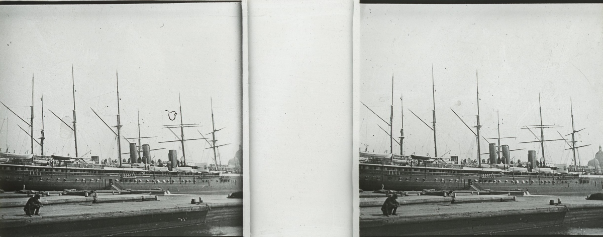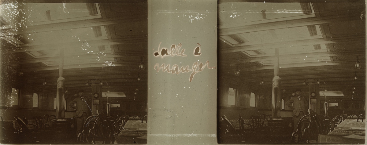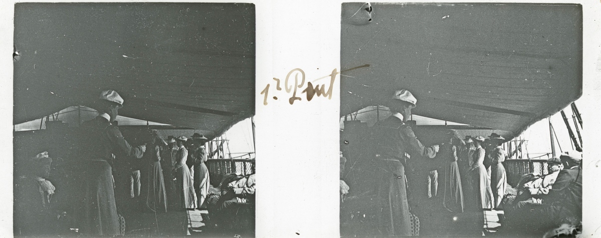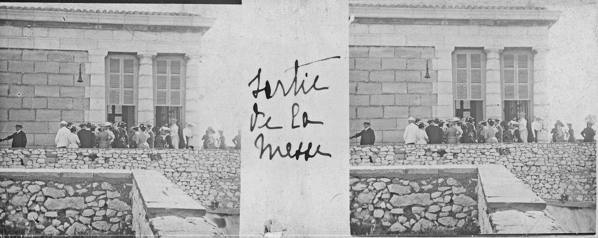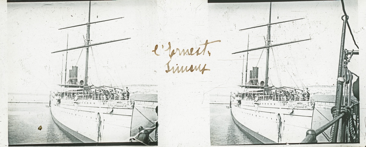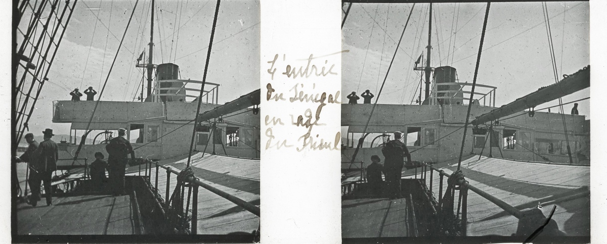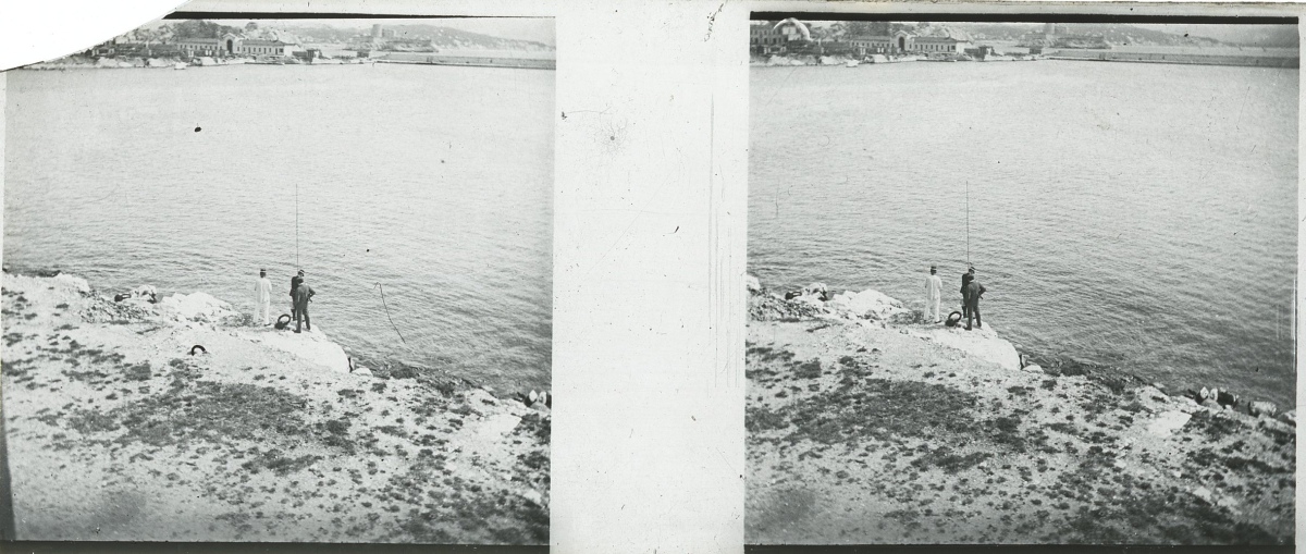 [Frioul - Peste] 51 plaques de verre stéréoscopiques positives, 12 x 9 cm, en majorité légendées, prises par Henri COUTROT, en septembre 1901. Rares vues inédites de la mise en quarantaine des passagers du paquebot de croisière " Le Sénégal " sur l'île de Frioul en septembre 1901 : à bord du " Sénégal ", le paquebot " Ernest-Symons ", port du Frioul, lazaret " hôpital Caroline ", etc.