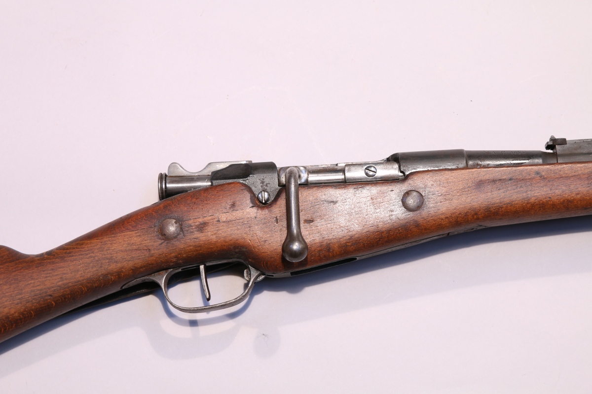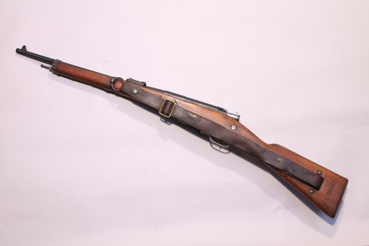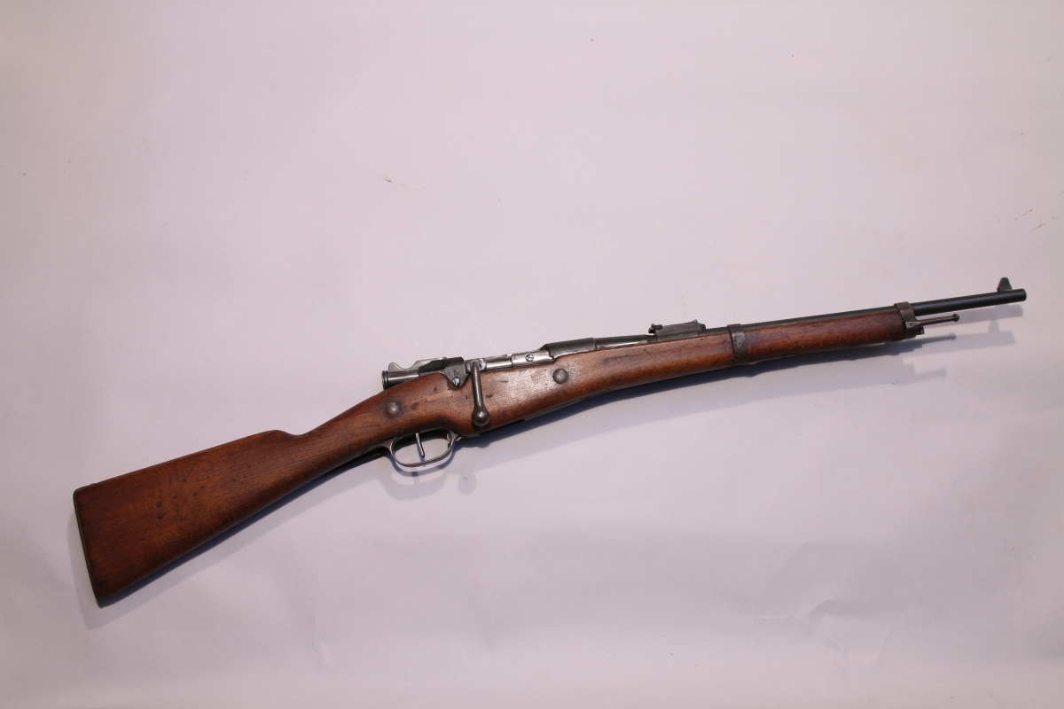 MOUSQUETON BERTHIER M16, 1924, 3 coups à répétition. Recalibré chasse en 8x348 Win. Crosse en noyer.