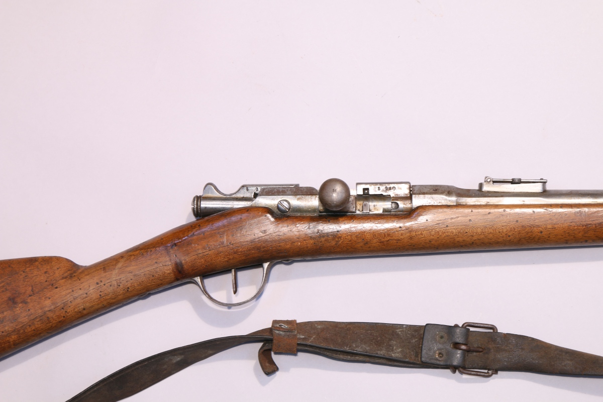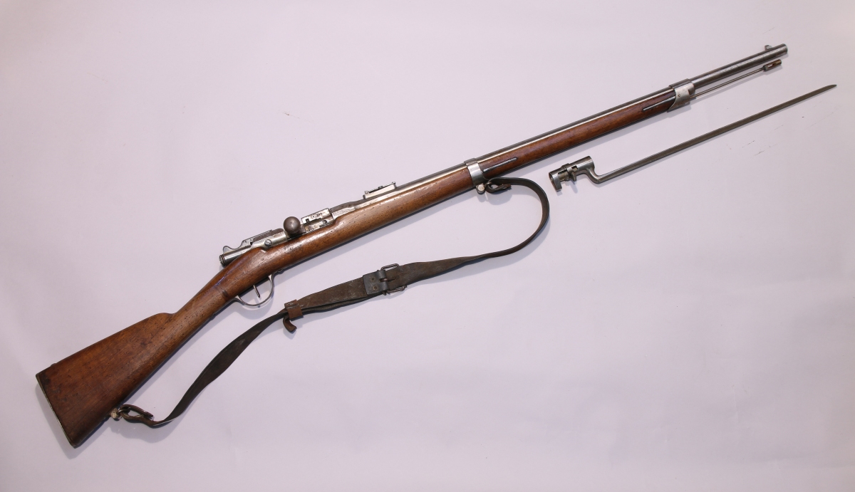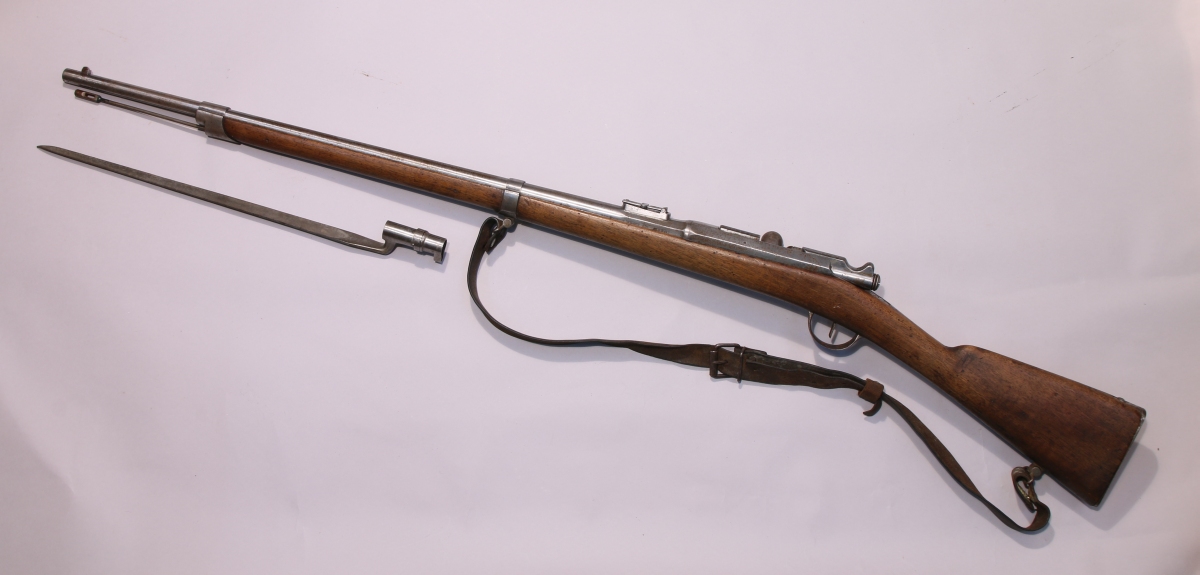 FUSIL GRAS DE CADET, modèle 1874, 11mm. Canon poinçonné T pour Tulle et daté 1881. Culasse numérotée 230. Crosse en noyer. Avec une baïonnette à douille (sans marquages).