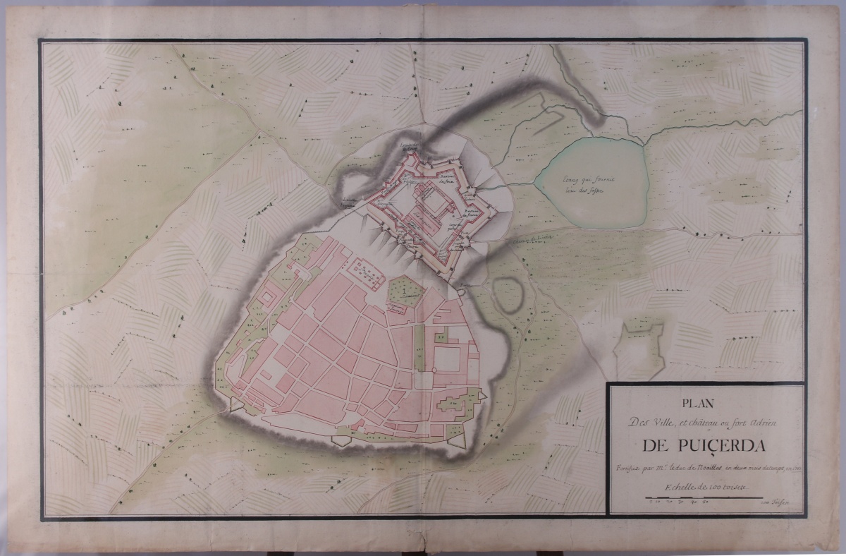 "Plan des ville, et château ou fort Adrien de Puiçerda, fortifiez par M. le duc de Noailles en deux mois de temps, en 1707".