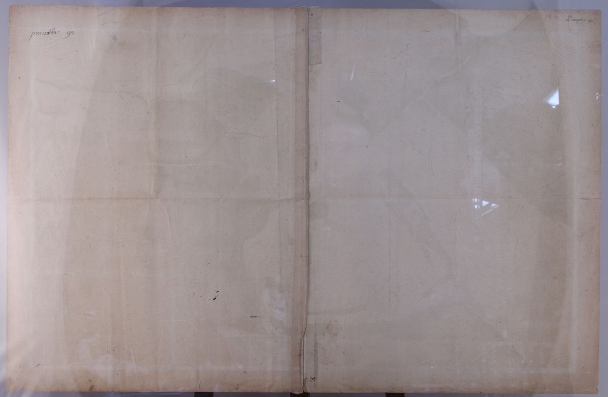 Haut. 52,5, Larg. 82 cm. (plis, petites déchirures et légères traces de rousseurs sur les bords)