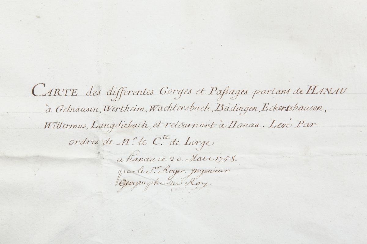 levé par ordres de M. le Cte de Lorge. A Hanau, ce 20 mars 1758 par le Sr Roger, ingénieur géographe du roy".
