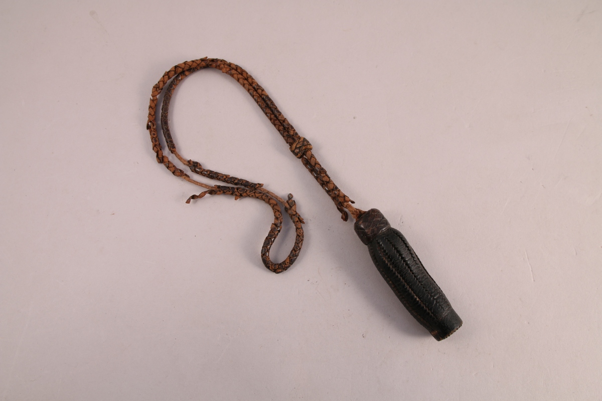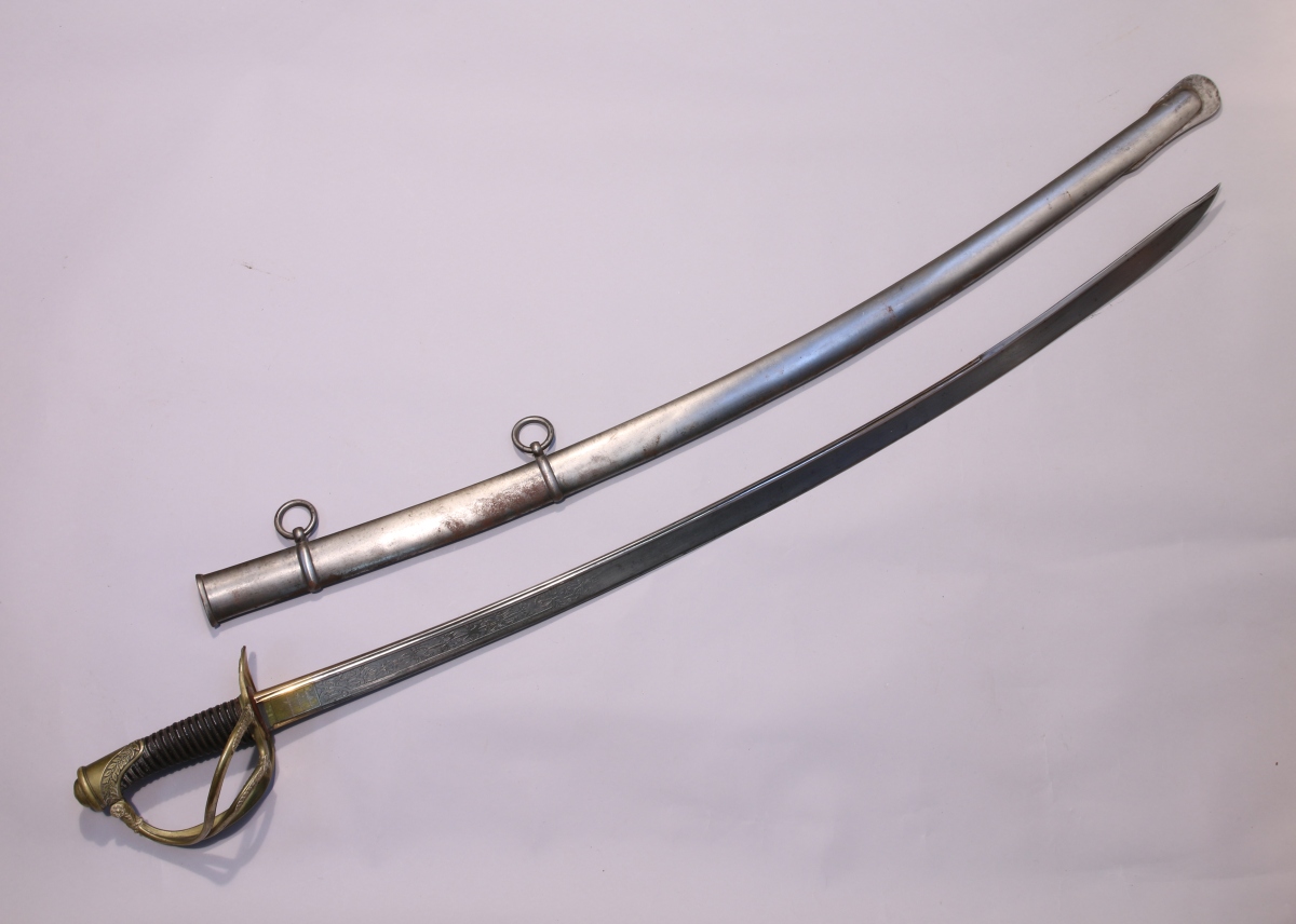 La garde en bronze modèle 1822 ornée de palmette et la poignée en cuir.