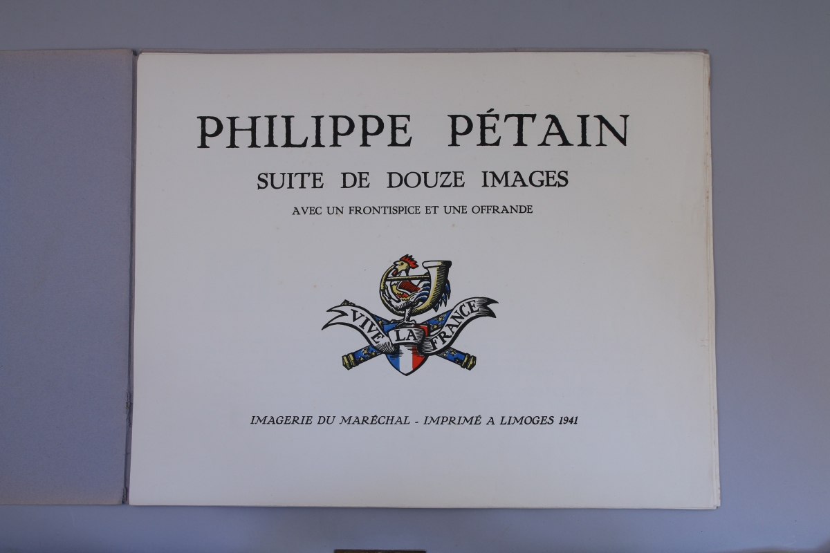 - ALBUM. Philippe Pétain, Imagerie du Maréchal, Limoges, 1941. Album complet de ses douze planches, son frontispice et son "offrande" auquel on joint "Saint Philippe Apôtre", de l'Imagerie du Maréchal, Limoges, 1942.