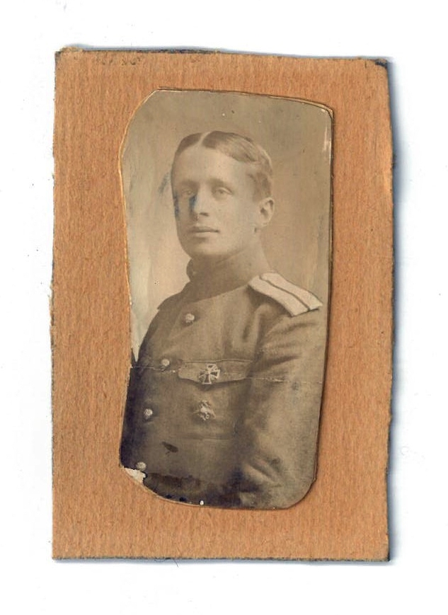 JOINT : une PHOTOGRAPHIE découpée du titulaire en uniforme de capitaine arborant cet insigne, ainsi que celui de l'école de cavalerie Nicolas.