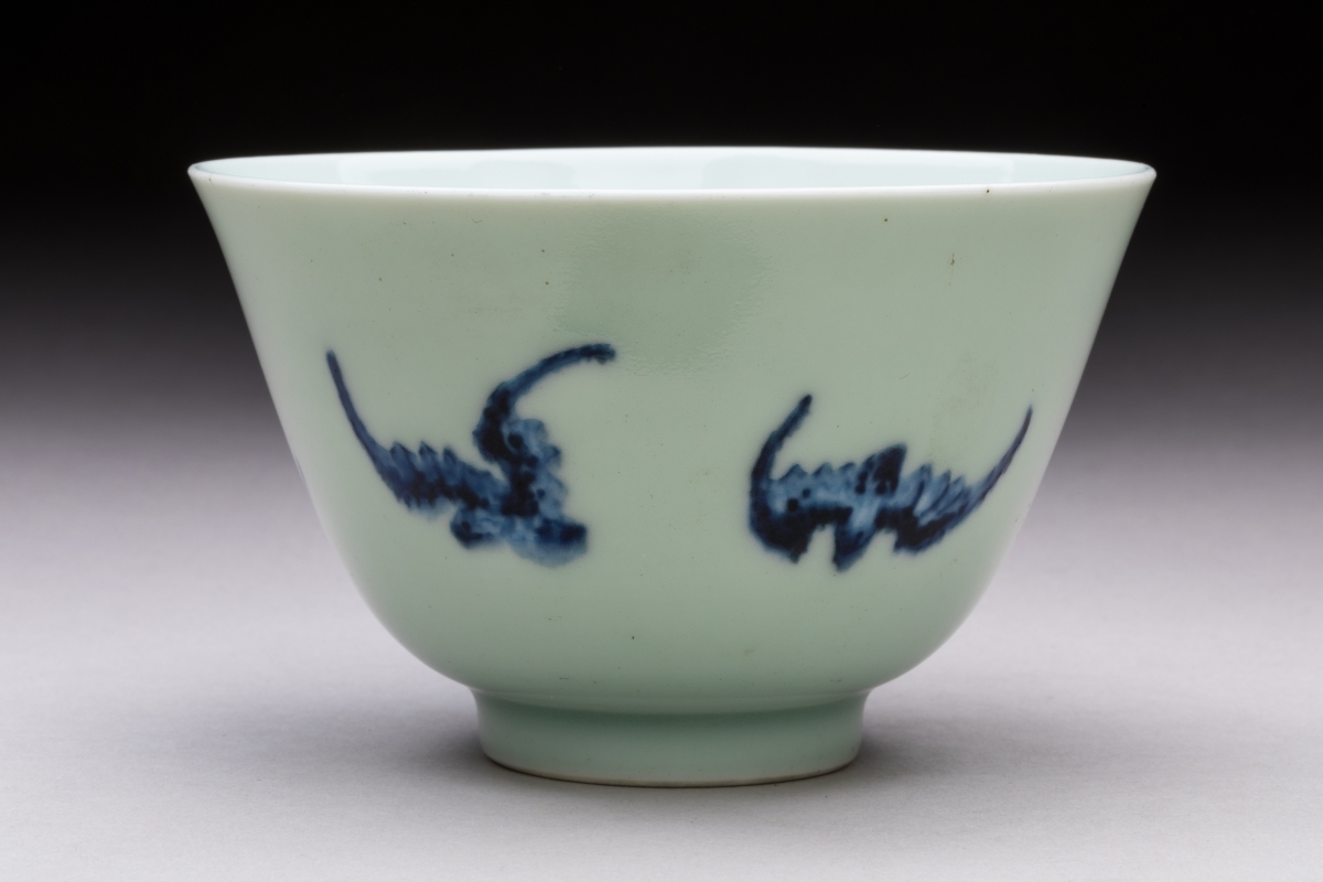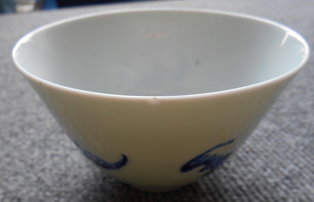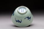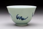 BOL en porcelaine décorée en bleu sous couverte de cinq chauves-souris