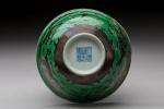 Trois BOLS en porcelaine émaillée vert et manganèse