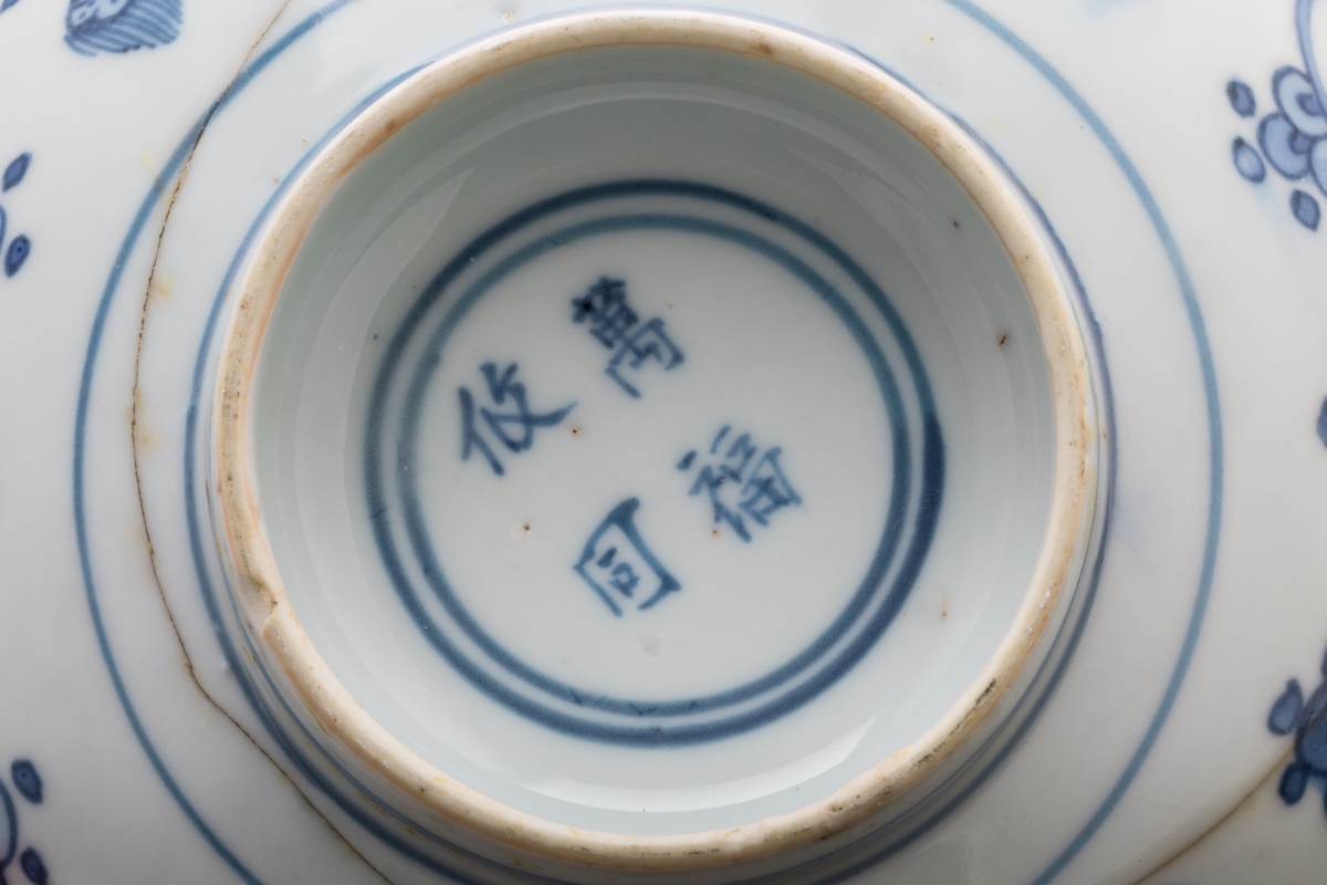 Au revers, la marque en bleu sous couverte Wan Fu Xiao Trong, "beaucoup de bonheur".