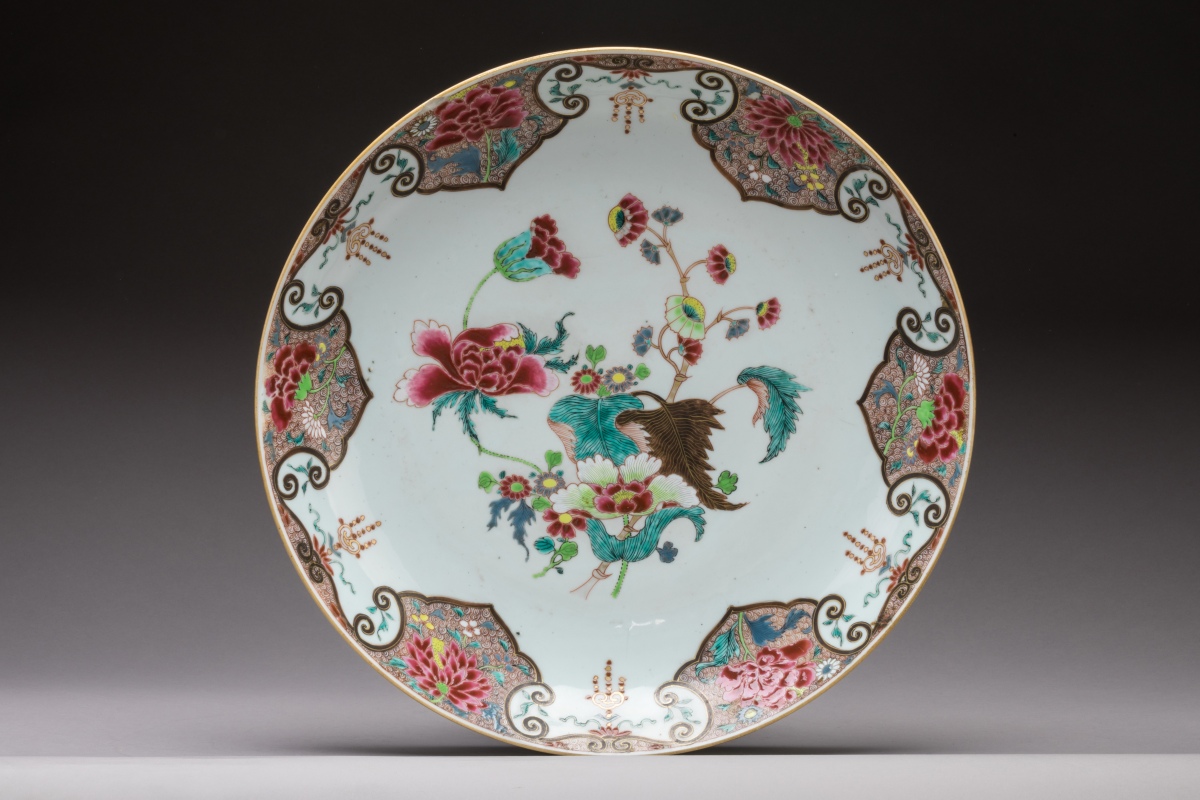 CHINA, QIANLONG period, CHINESE EXPORT PORCELAIN. A large polychrome porcelain DISH decorated with 'famille rose' enamels.