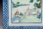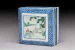 CHINA, 19th century. A polychrome enameled porcelain square BOX. Apocryphal Qianlong mark.
