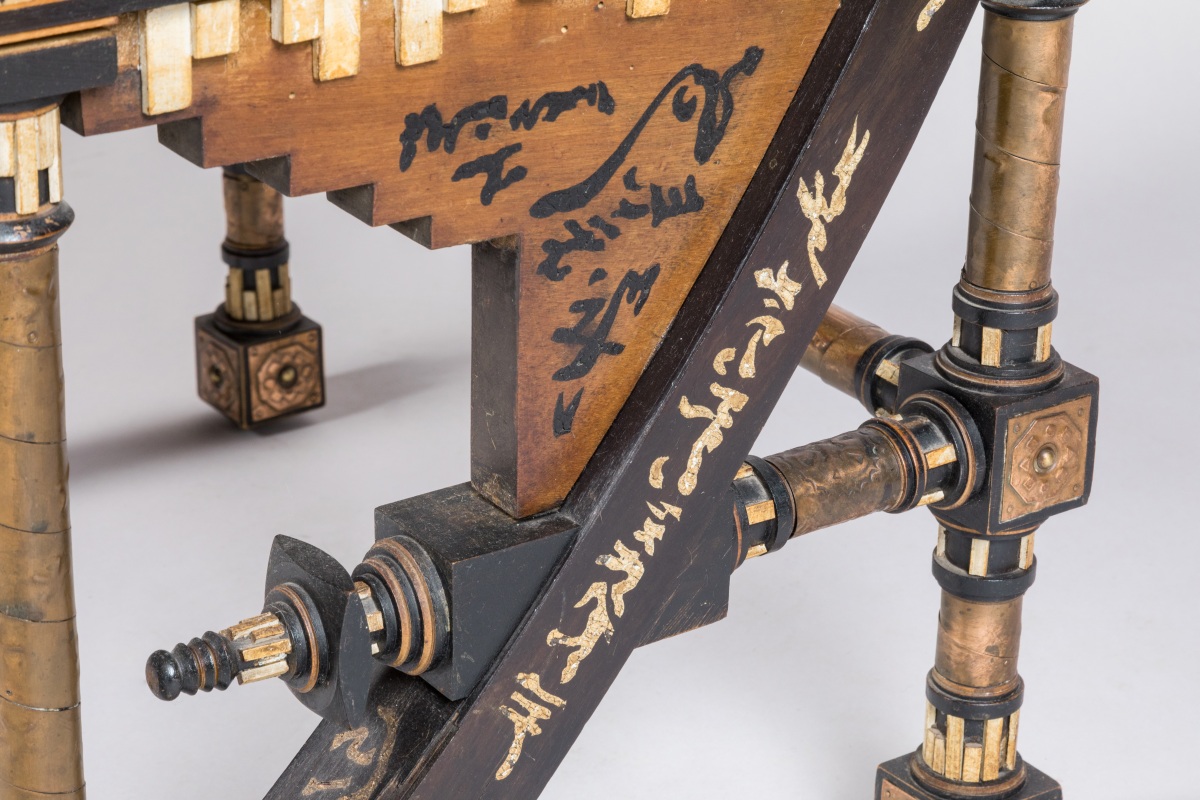 Carlo Bugatti se distingue par la richesse de ses créations dont l'inspiration lui vient notamment de l'observation de l'artisanat islamique, s'inscrivant en cela dans le mouvement de l'orientalisme et la lignée de l'Aesthetic movement anglais. Empruntant au vocabulaire ornemental du Proche-Orient ses fines colonnettes en cuivre et ses incrustations de nacre sur fond de bois sombre, il développe dès les années 1880 une gamme de mobilier particulièrement originale.