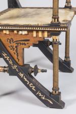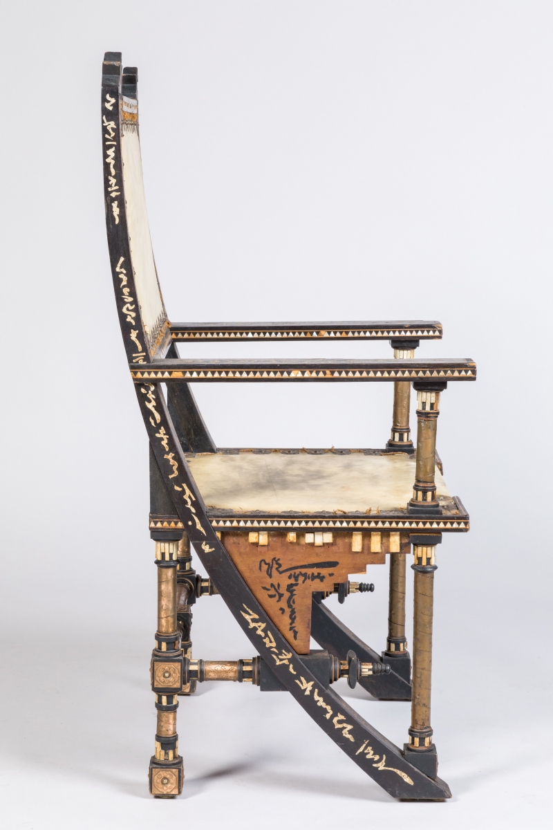 - "Carlo Bugatti au musée d'Orsay : catalogue sommaire illustré du fonds d'archives et des collections", publication réalisée par la Réunion des Musées Nationaux en 2001. Modèle pour le piètement à rapprocher du n° 6.43 (ODO 1996-20-60). Siège présenté à l'exposition nationale de Turin de 1898.