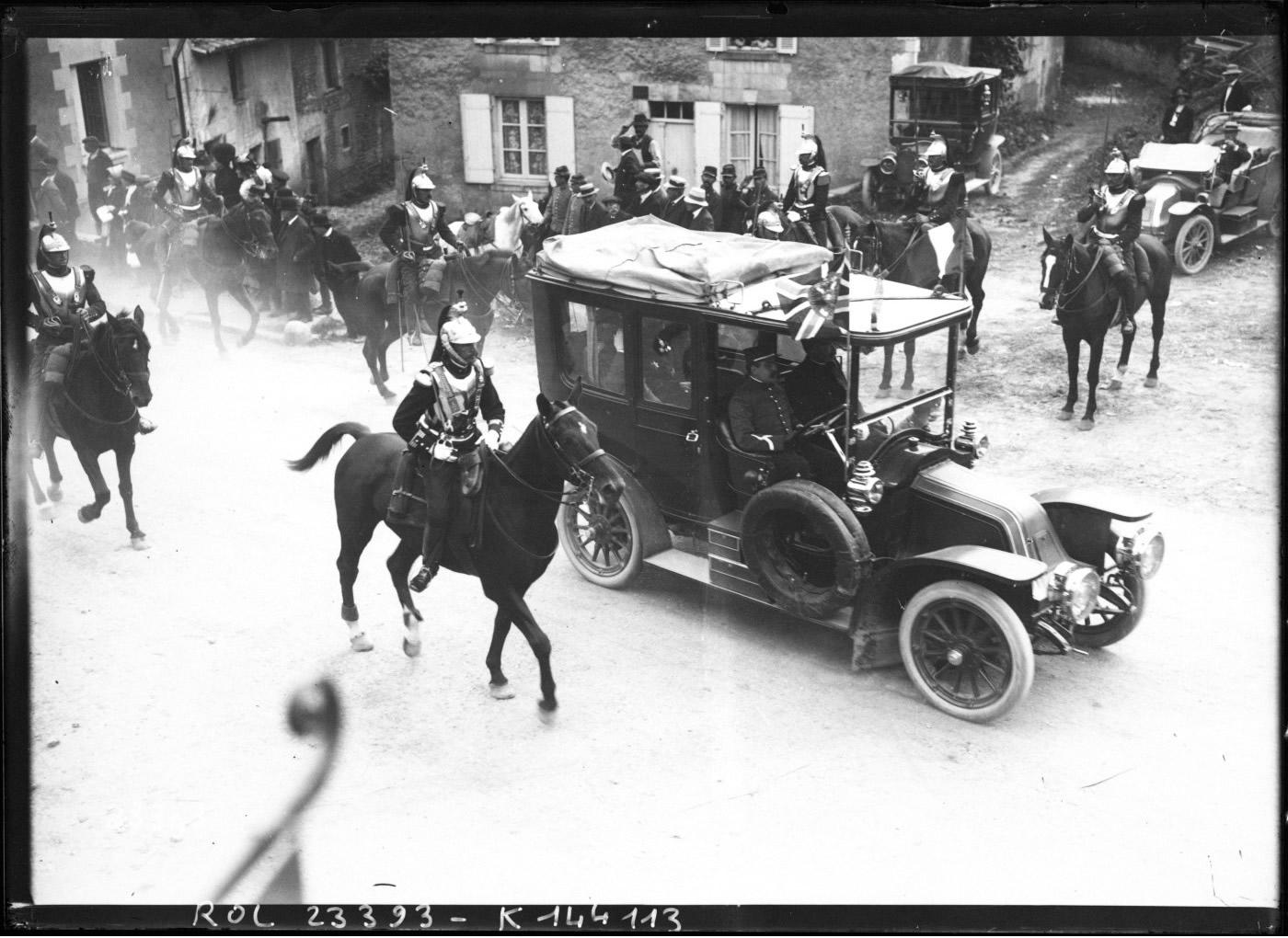 Manœuvres 1912, grand duc Nicolas de Russie se rendant en automobile, conduite par Marcel de Cotteau, sur le terrain des manœuvres.