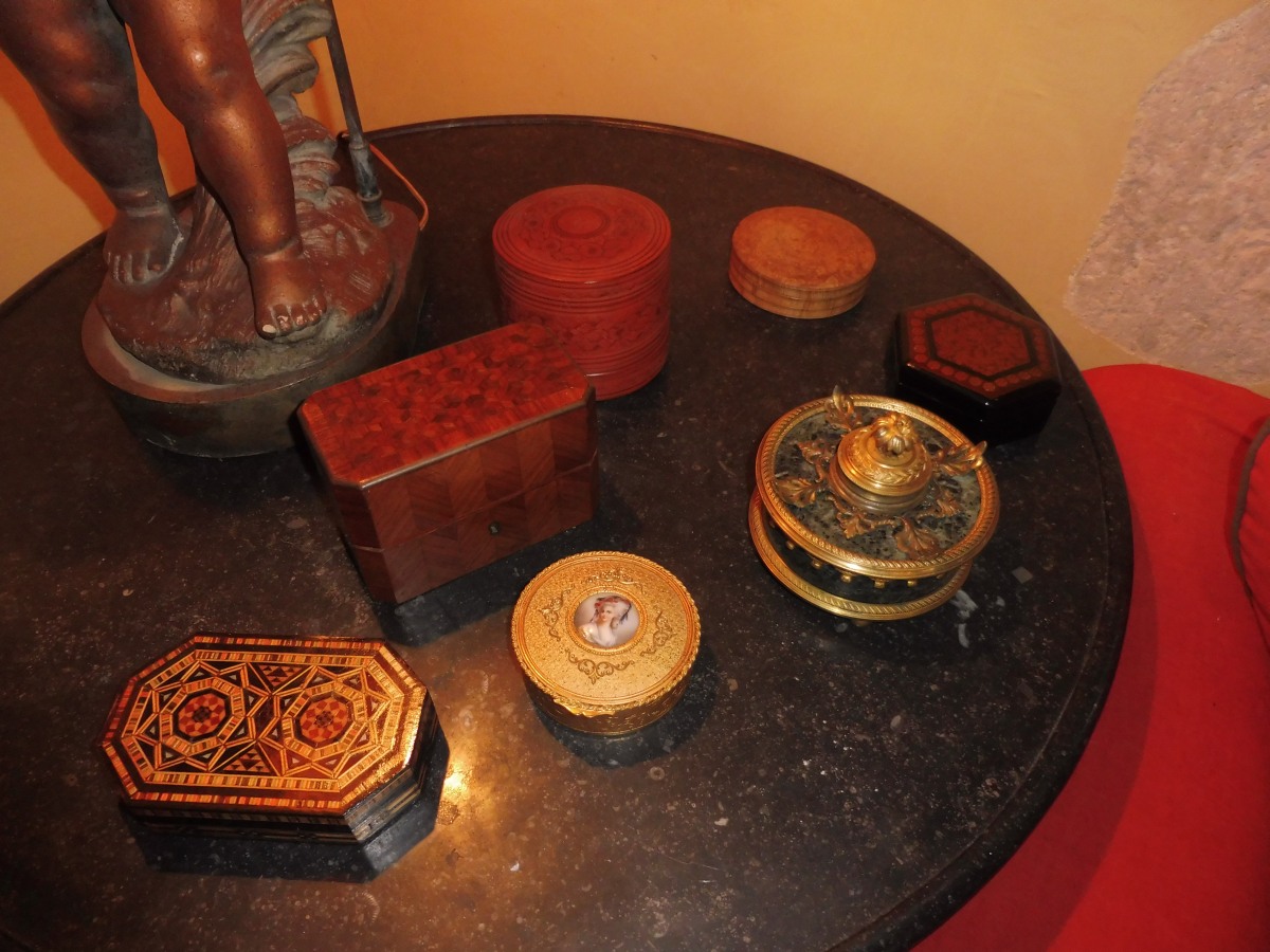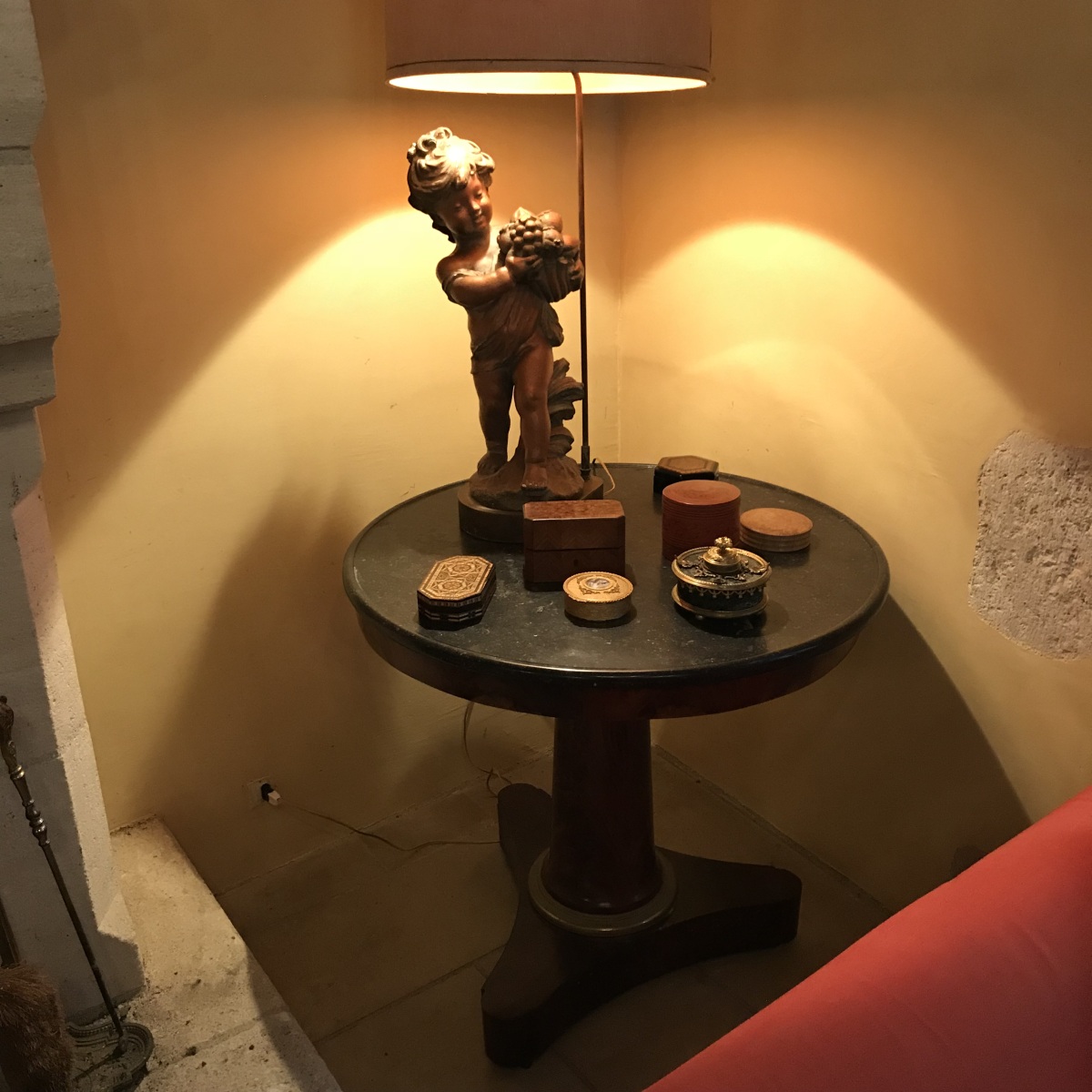 GUÉRIDON en placage d'acajou, XIXe - Petites BOÎTES.