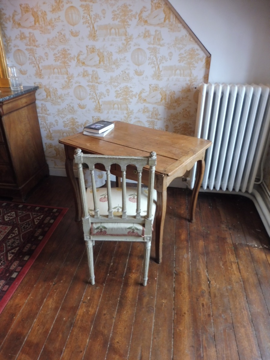 TABLE-BUREAU en bois naturel de style Louis XV - CHAISE de style Louis XVI.